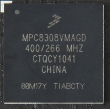 Rebranded Freescale Semiconductor MPC8308 PowerPC system on chip running linux with a fancy "E2100" sticker on top with 1GB of DDR2 memory and 8MB of flash