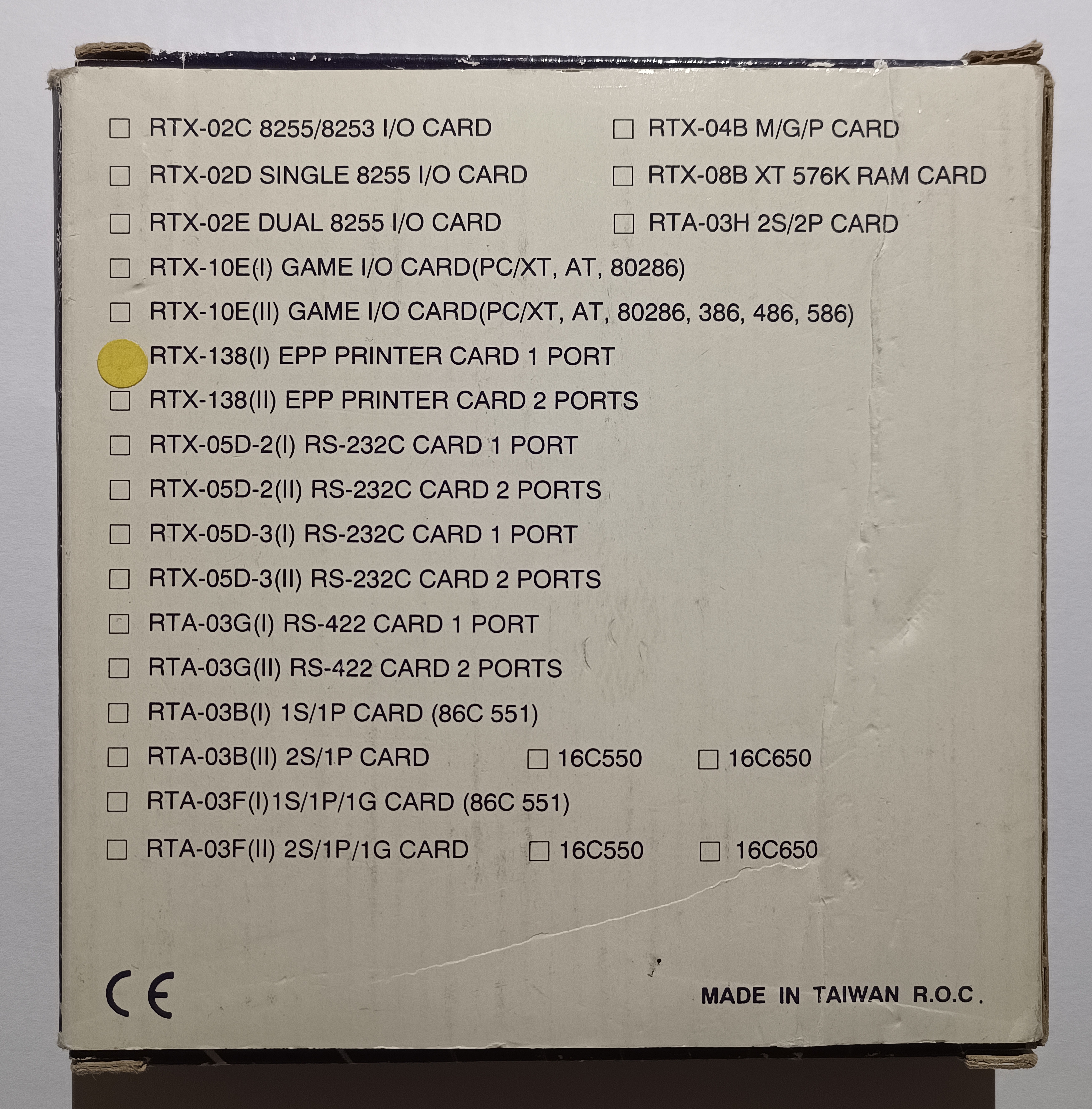 | I/O Options | Parallel port |