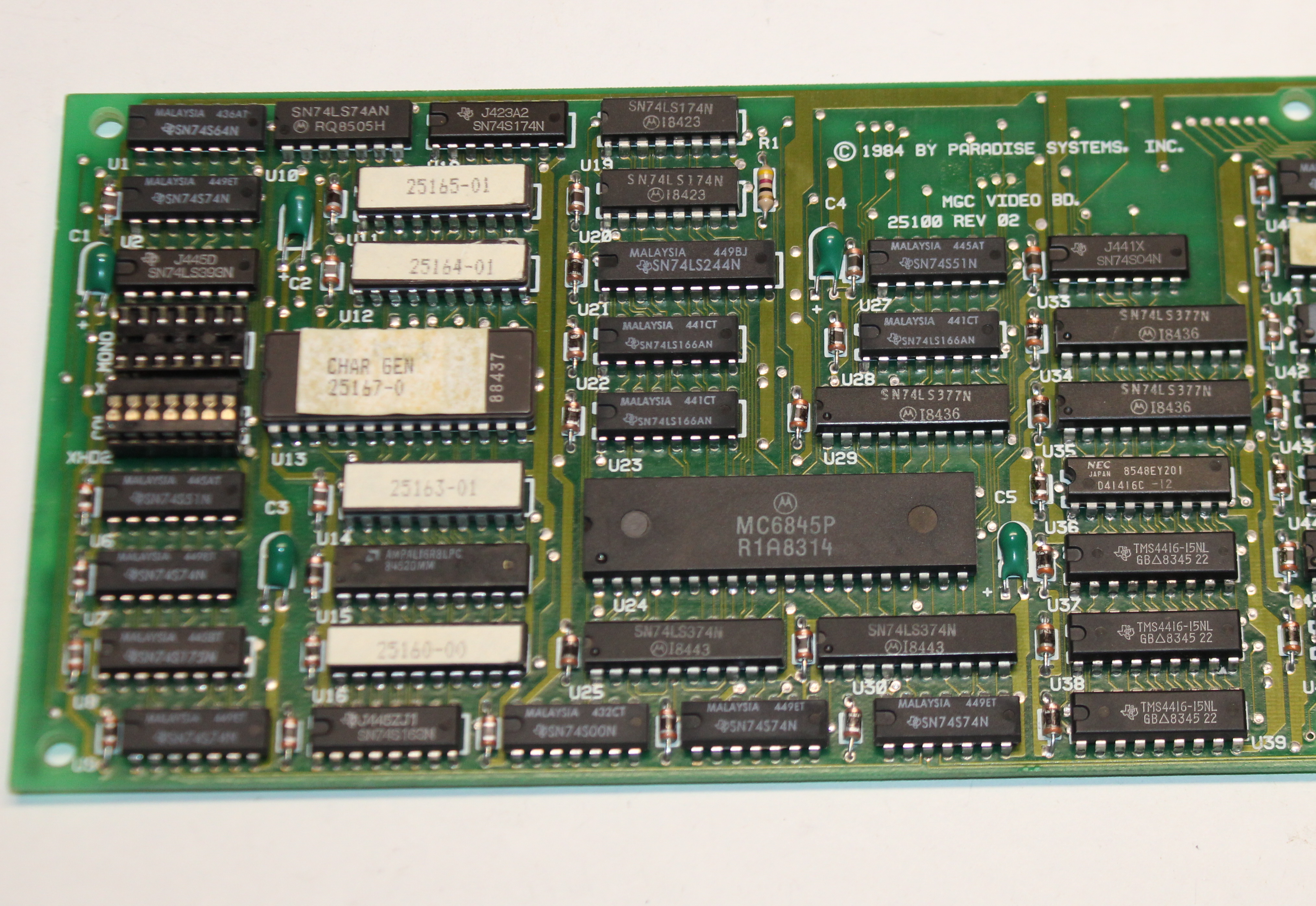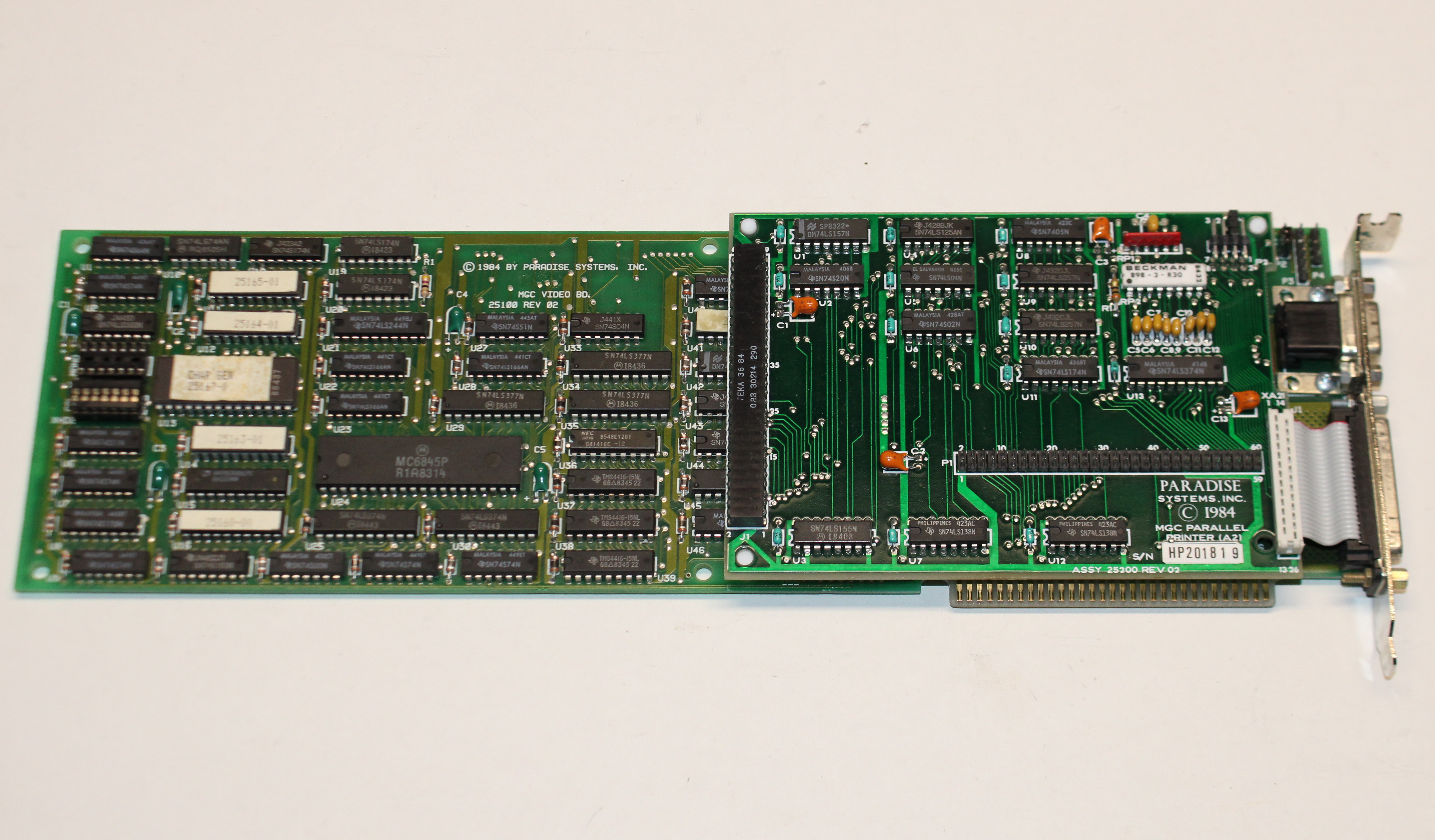 The MGC Board from Paradise Systems was an IBM MGA and CGA-compatible video card. As the name implies, the MGC was designed to be modular, with support for a number of add-on daughterboards to extend your PC with a parallel or serial port, additional system memory (up to 256 KB), or other modules. Up to two daughterboards can be connected at the same time via what Paradise called 'A module' and 'B module'. This allowed for, say, a battery-backed clock and additional system RAM.