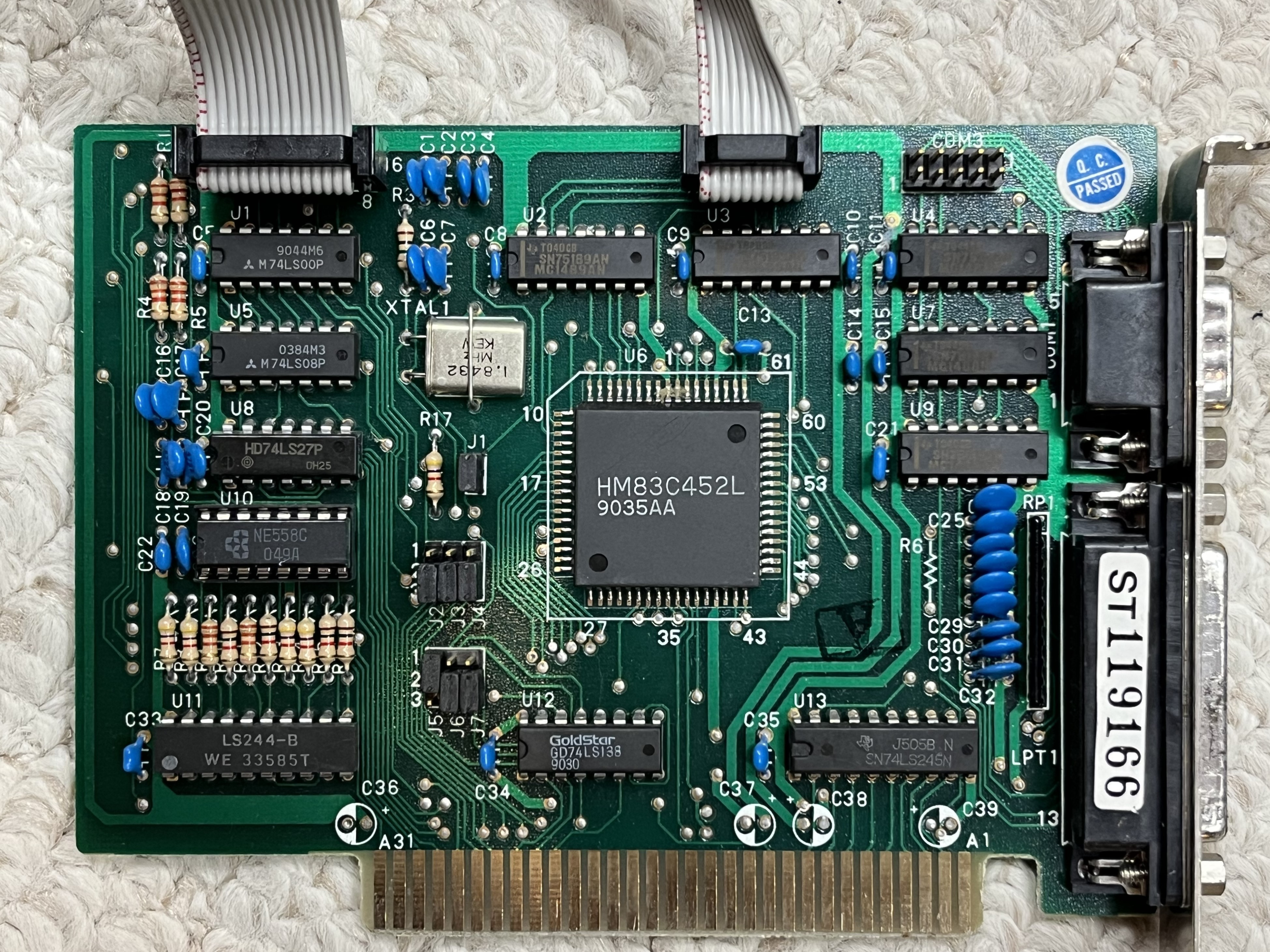 the external COM1 port and the internal COM3 header are the same port, effectively this card only has 2 serial ports