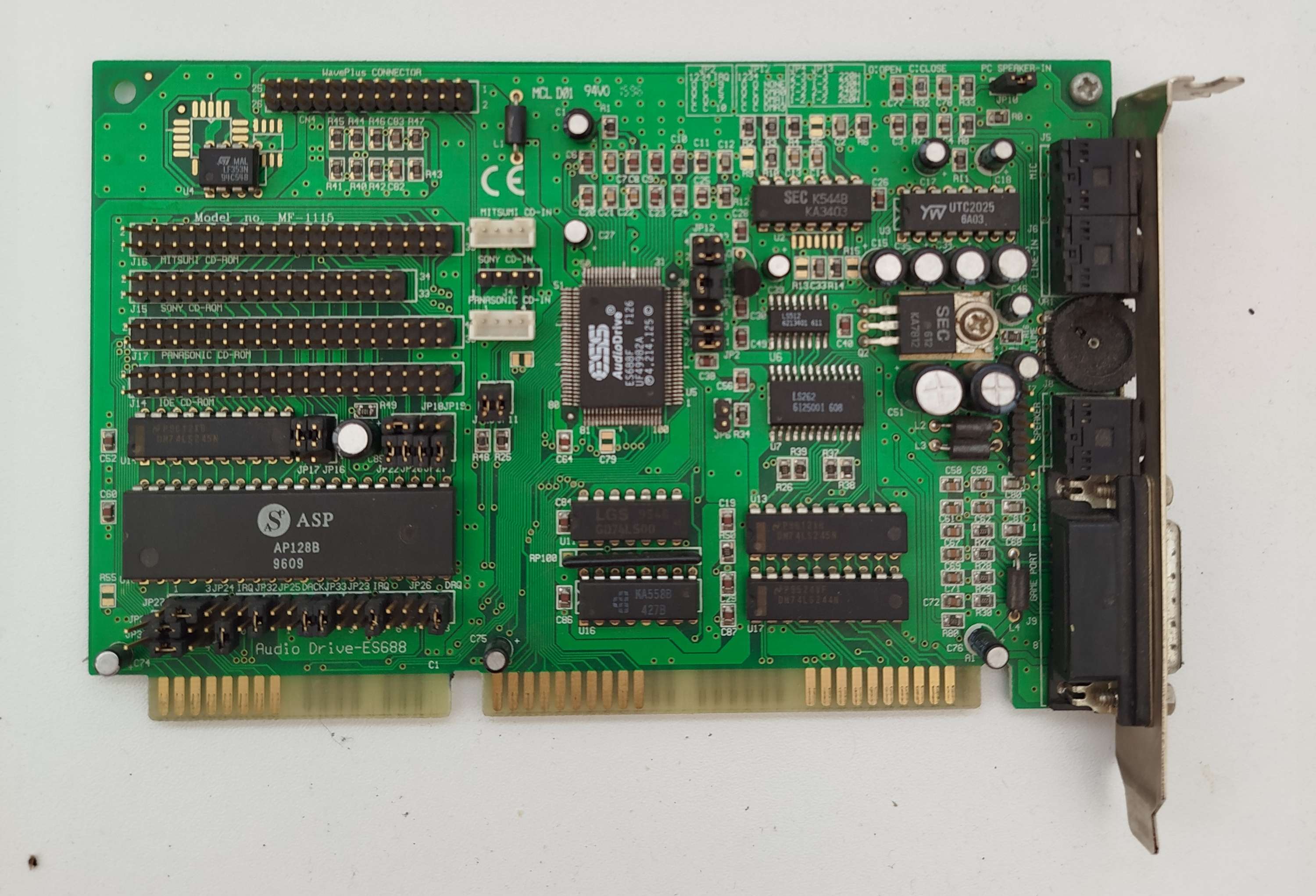 | I/O Options | CD-ROM audio in (3), CD-ROM interface (3), game/MIDI port, IDE (AT) interface, line in, line out, microphone in, speaker out, synthesis connector (2), wavetable connector |