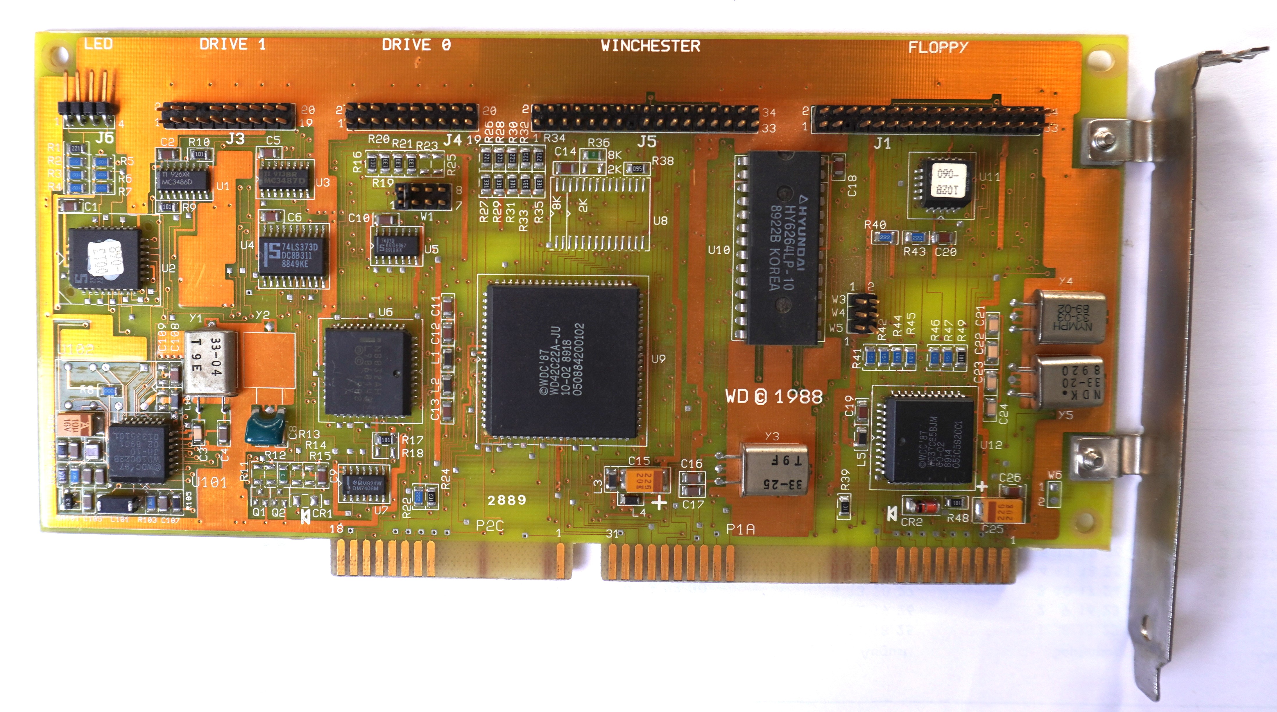 There are a pair of link contacts (directly below J5) that set which buffer size the card expects. Switching this link and the RAM chip is likely the only requirement for converting a WD1003 to a WD1006 (or vice versa).