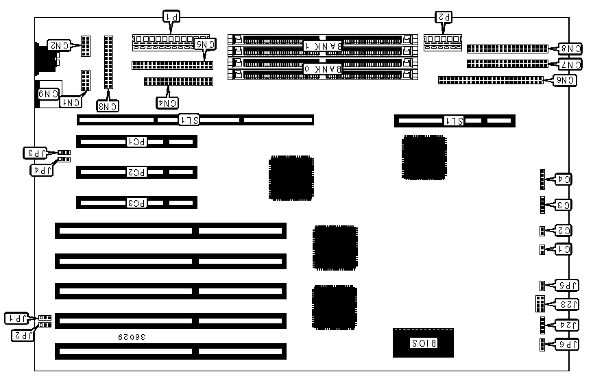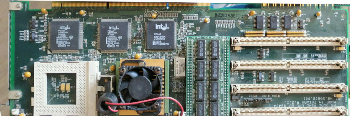 Chips on the mainboard are as follows: Intel 82374EB (ESC), Intel 82375EB, Adaptec AIC-7870P