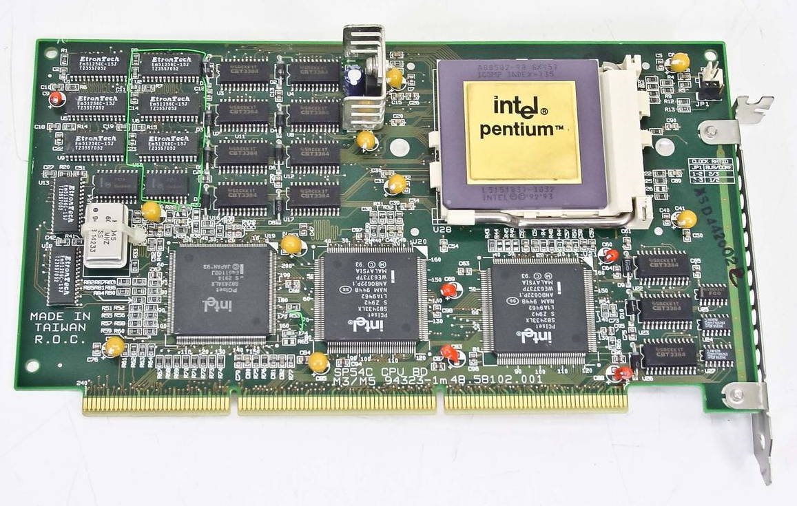 Uses CPU riser cards, which are configured like this: Intel 420TX(Single 486DX4), Intel 430LX(single Pentium 5V and Pentium 3.3V), Intel 430NX (dual Pentium 3.3V)