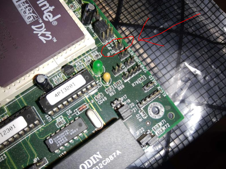 CPU setup - in mainboard manual is mentioned support for 3,3V DX4 CPU but not mentioned any voltage settings. I've investigated and foud that mainboard can detect 3,3V CPU by grounded CPU pin S4. It can be also grounded by JP30 and this way 3,3V can be forced.
