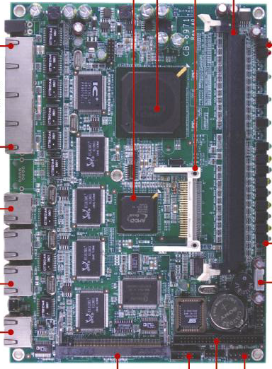 CB-6971B-050 AMD Geode LX800 Low Power Control Board with Three 10/100 LAN and Four 10/100 switch