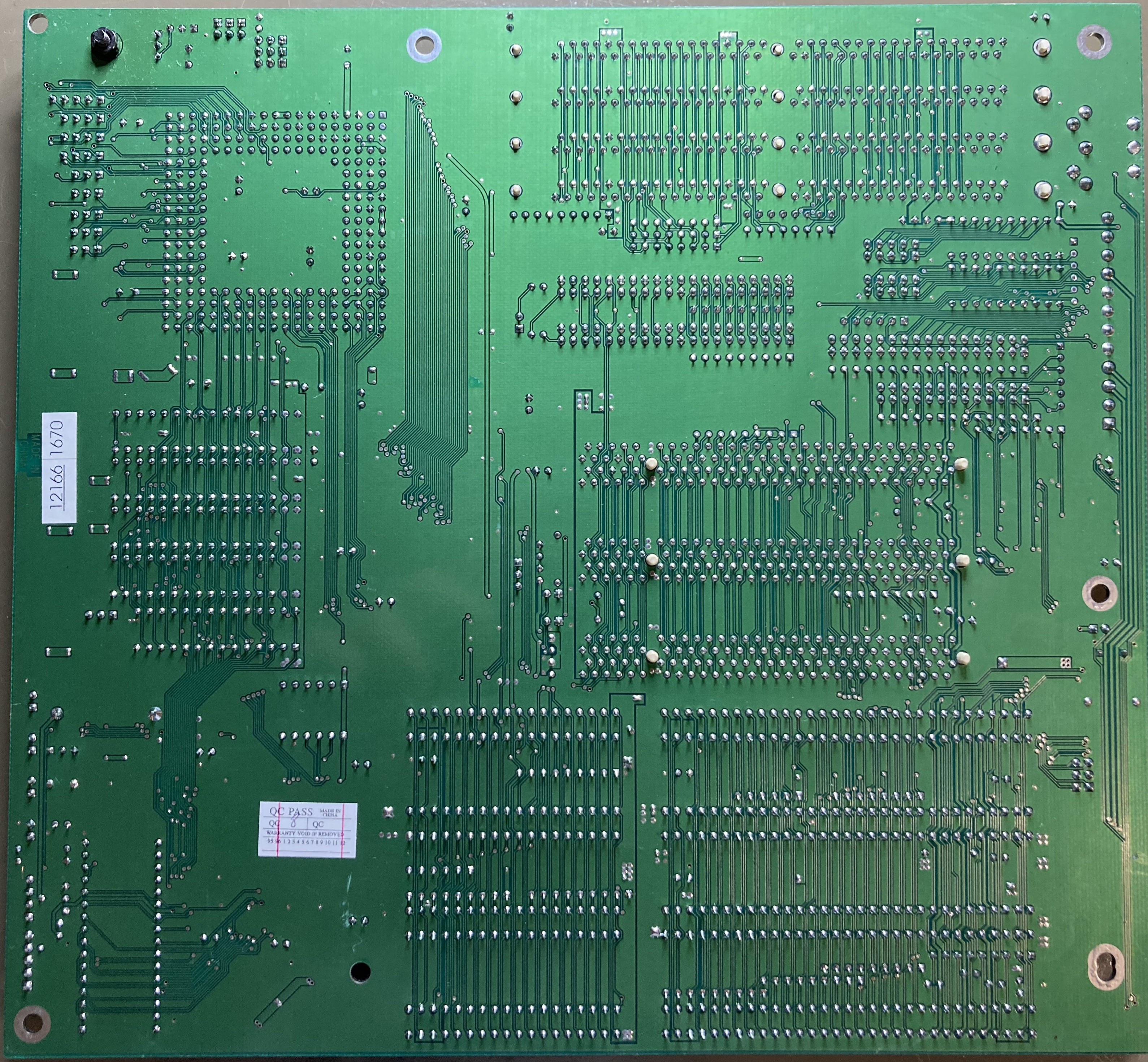 The motherboard may include a non-functional or counterfeit SRAM cache, which can adversely affect performance. Signs of fake cache often include soldered DIP-chips and no jumpers to set the chache size. Cache functionality can usually be restored by installing proper chips, jumpers and a BIOS update/mod.