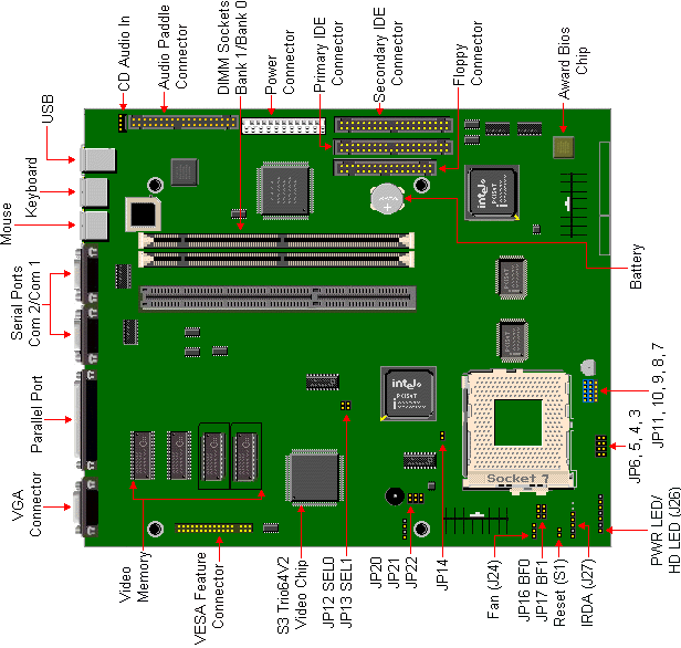 Board exists in 3 different variants with 3 different video chips, namely S3 Trio32, S3 Virge/DX and S3 Trio64V2/DX.