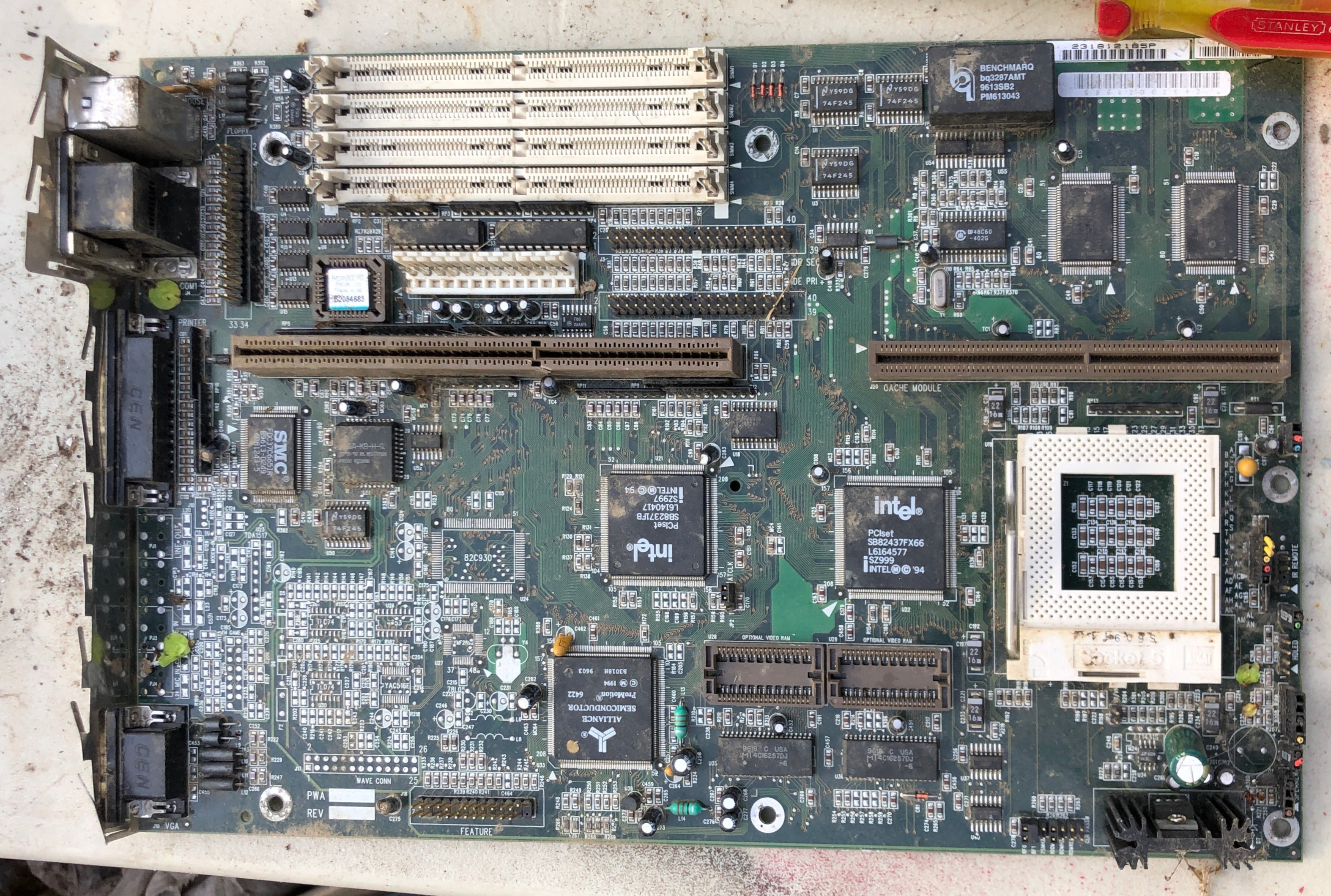 The motherboard's Real-Time Clock (RTC) chip contains a coin cell that may have drained, causing the loss of CMOS settings. This can result in an inability to save settings, causing system instability or failure to boot. To fix this, the RTC chip can be replaced with an equivalent or repaired by cutting into it and soldering on a new external coin cell holder. Replacement guides are available at https://github.com/necroware/nwX287 or https://github.com/necroware/nw12887, depending on the actual chip used.