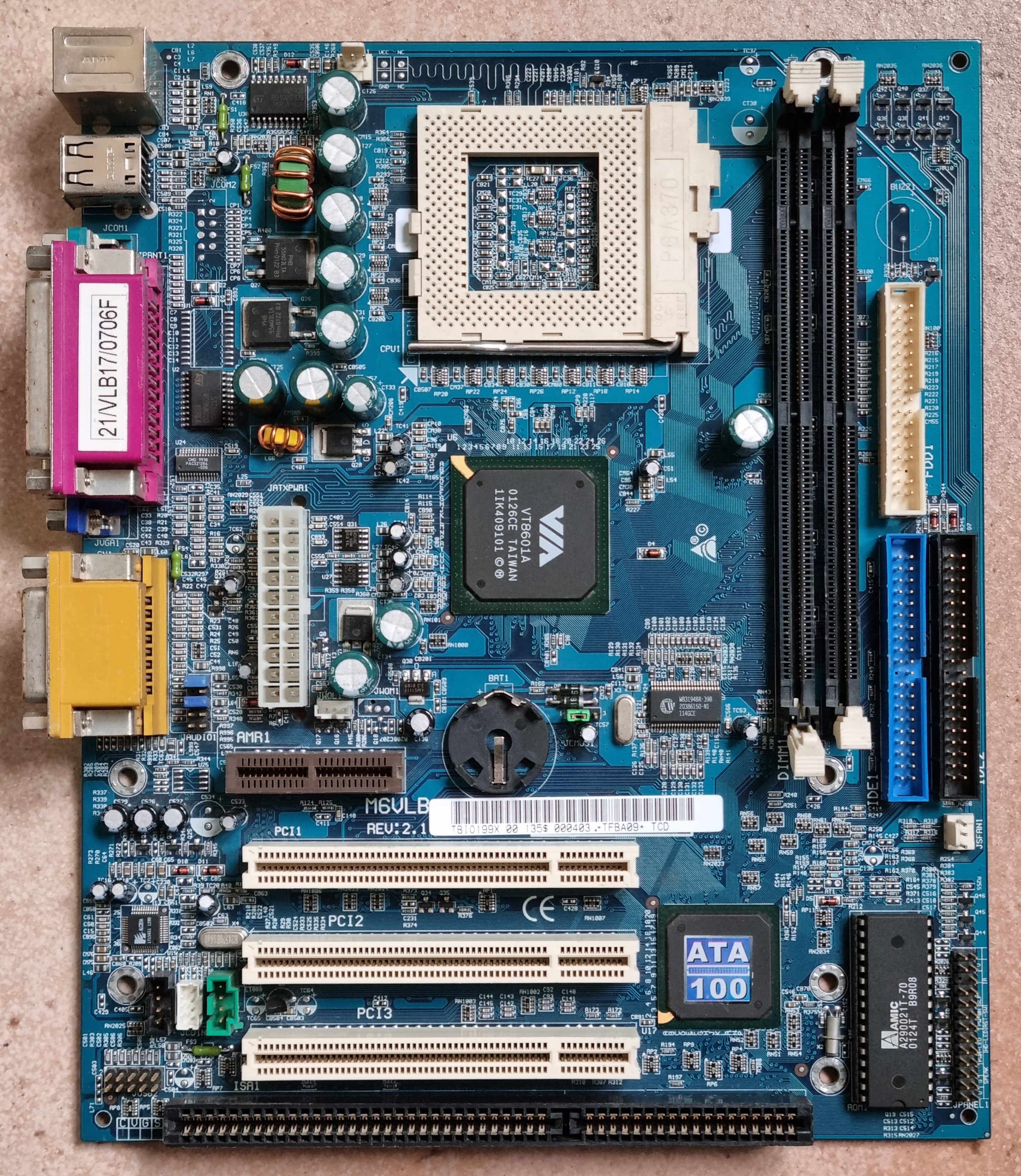 Optionally uses VT82C686B southbridge, marked by the "ATA 100" sticker. There is nothing known about a separate model name for those.