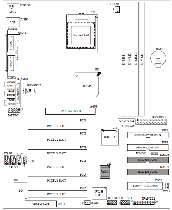 2 of the IDE connections are only mounted if the optional HPT370A chip is present.