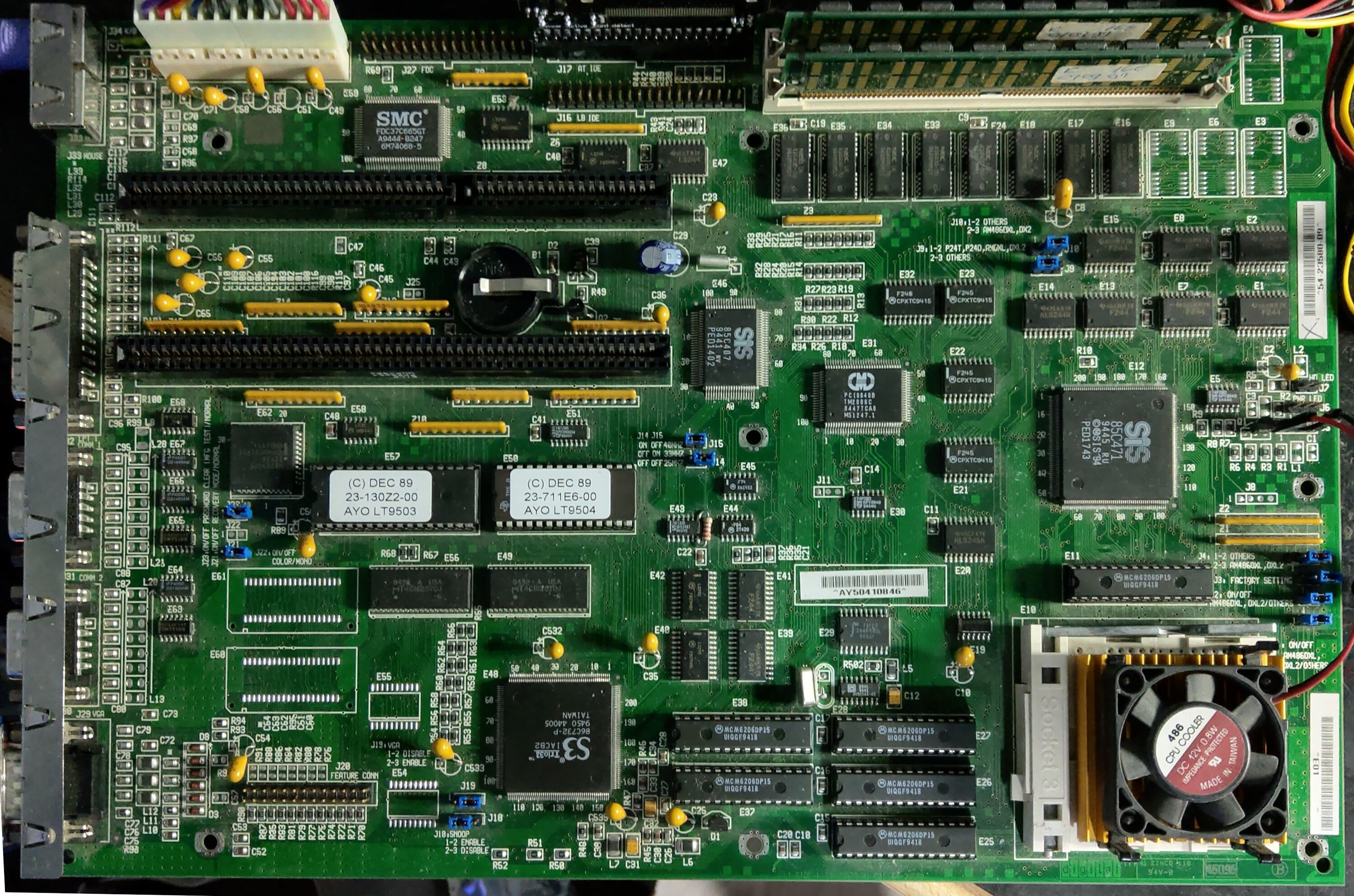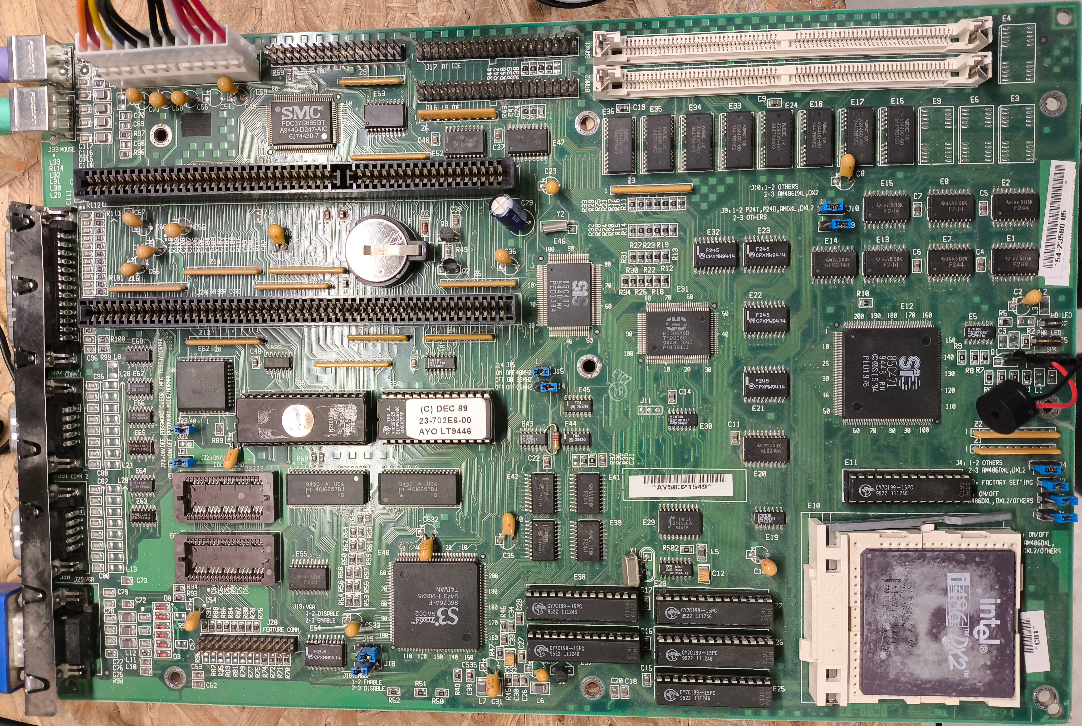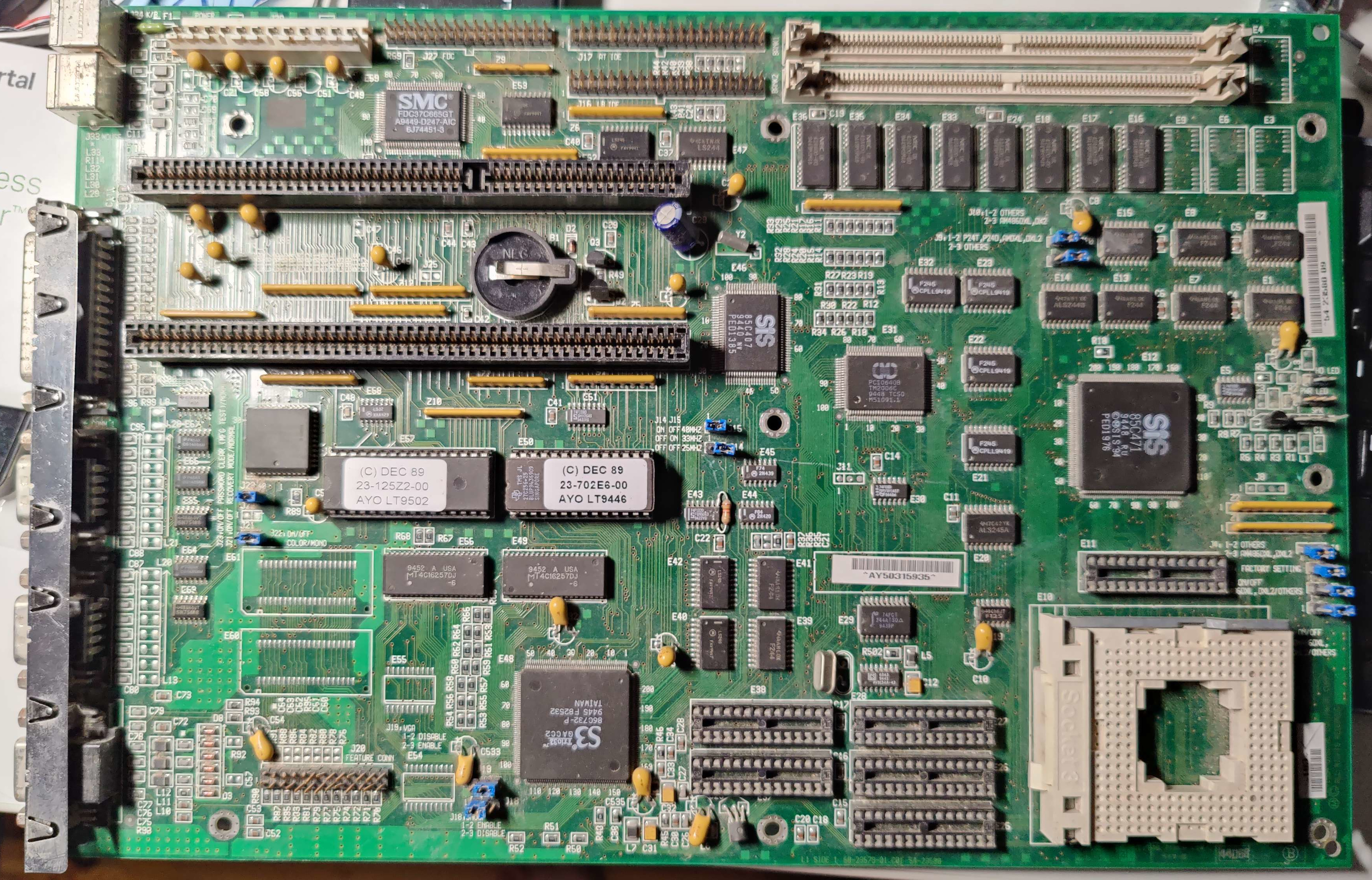 Apparently this board is also delivered with the S3 Trio64 graphics chip. When Trio 32, max VRAM is 1MB. J24 is for Riser card, J26 is personality card slot.