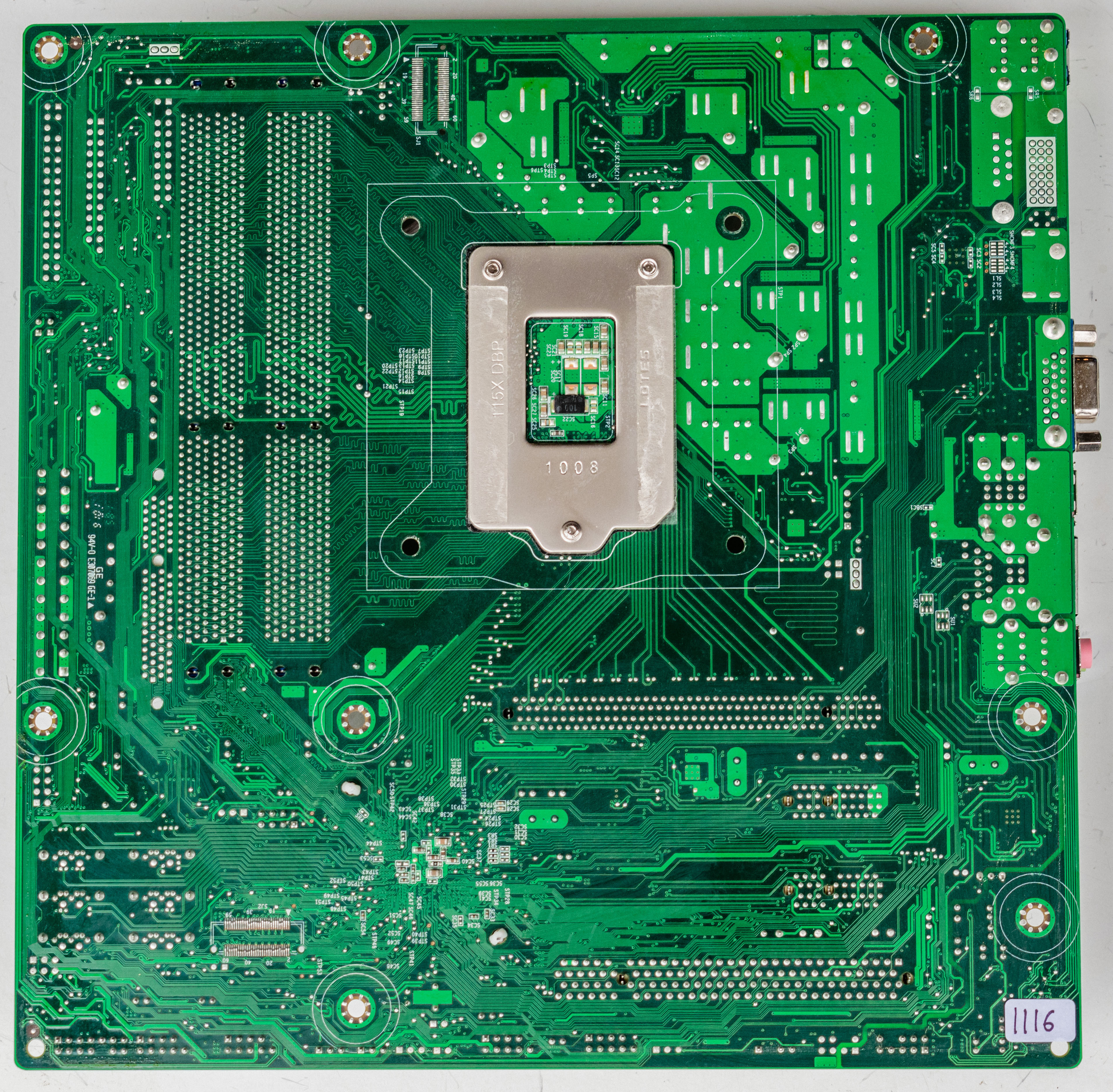 Onboard video output isn't available with Lynnfield CPUs due to missing iGPU. Unpopulated pads for HDMI, DVI and serial rear ports. Unpopulated pads for internal floppy, parallel, serial and TPM headers.