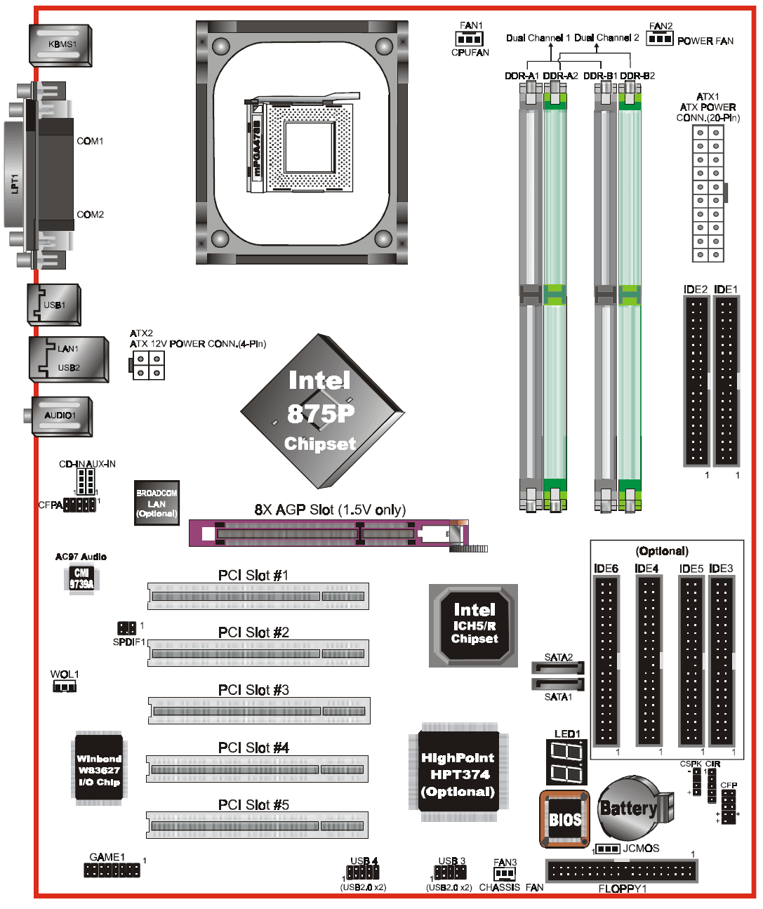 Uses optional HPT374 RAID controller for additional IDE channels.