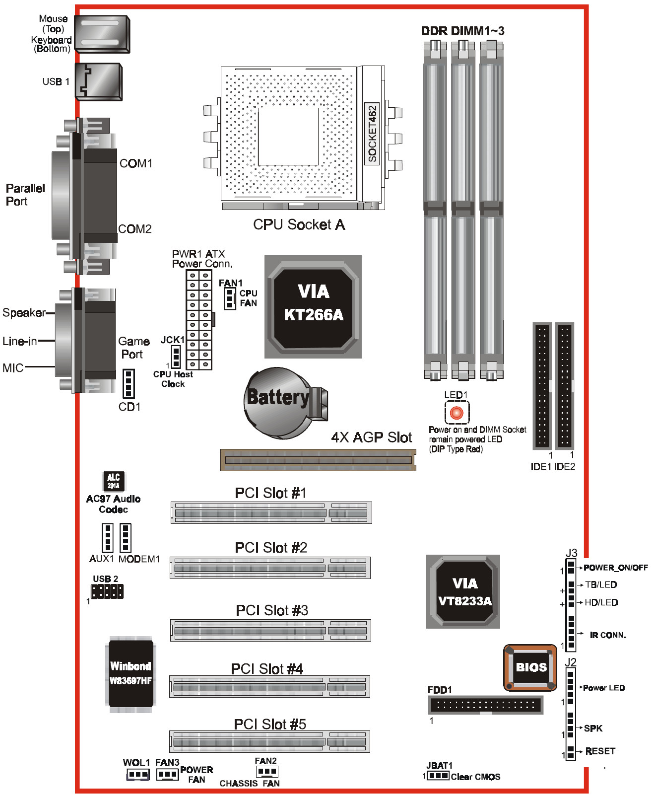Uses VT8233 (non-A) in early h/w revisions.