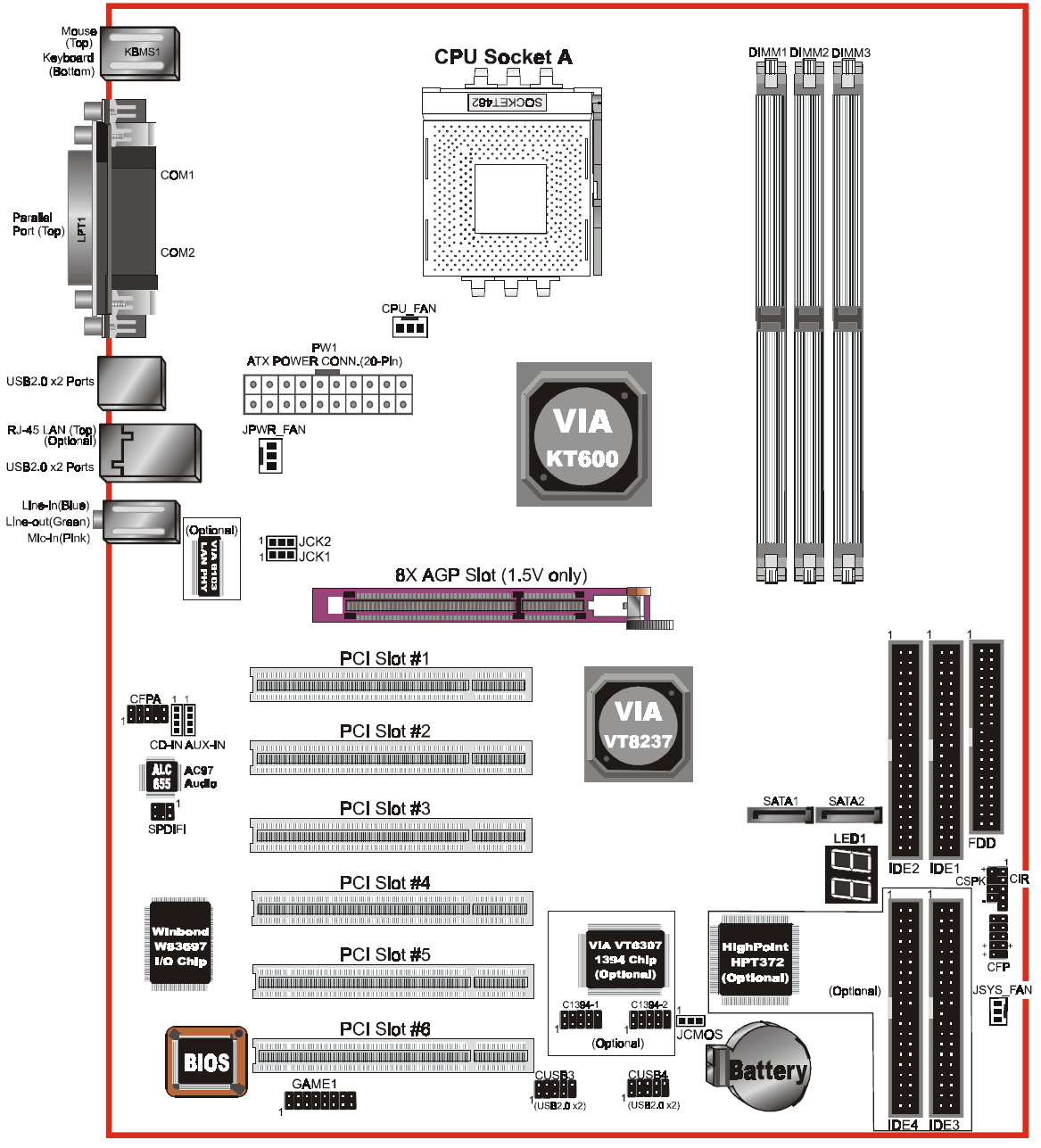 Uses optional HPT372 RAID controller.