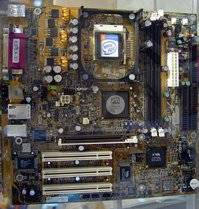 Prototype motherboard, shown at COMPUTEX 2002 in Taipei. Has a C-Media AC'97 audio chip, specific model unknown.