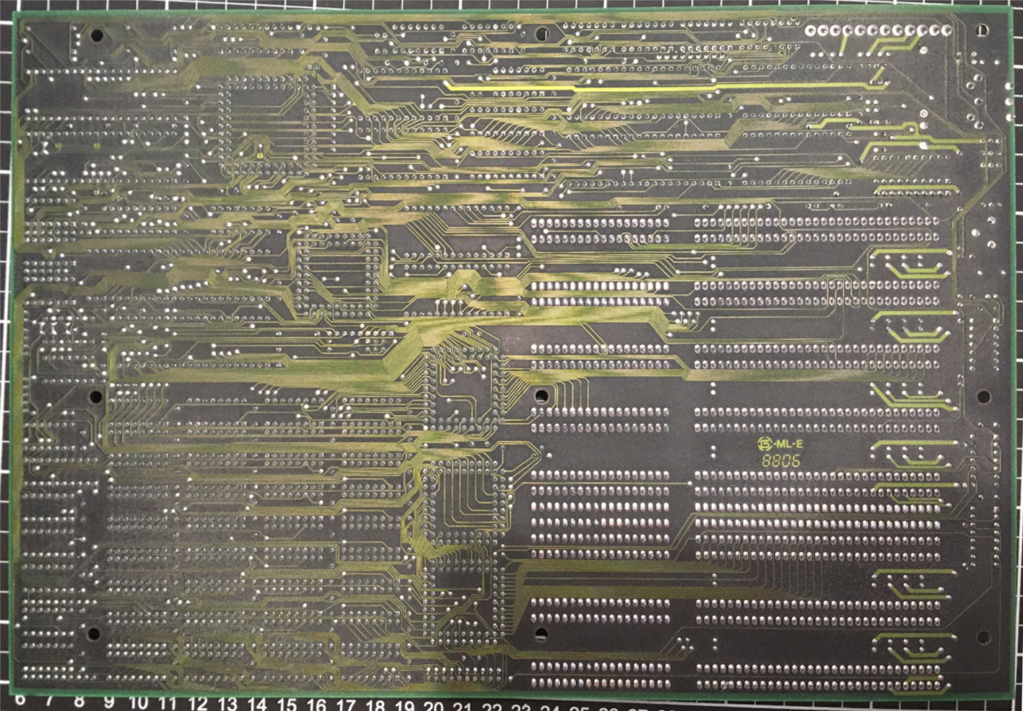 The Ni-Cd battery may be leaking, risking damage to PCB layers & nearby components. Promptly remove the battery & clean corrosion/alkaline salts from the board. Use white vinegar to dissolve salts, but exercise caution as vinegar can corrode exposed metals. A thorough examination & repair may be needed. Replace battery with guide: https://github.com/wiretap-retro/Not-A-Varta
