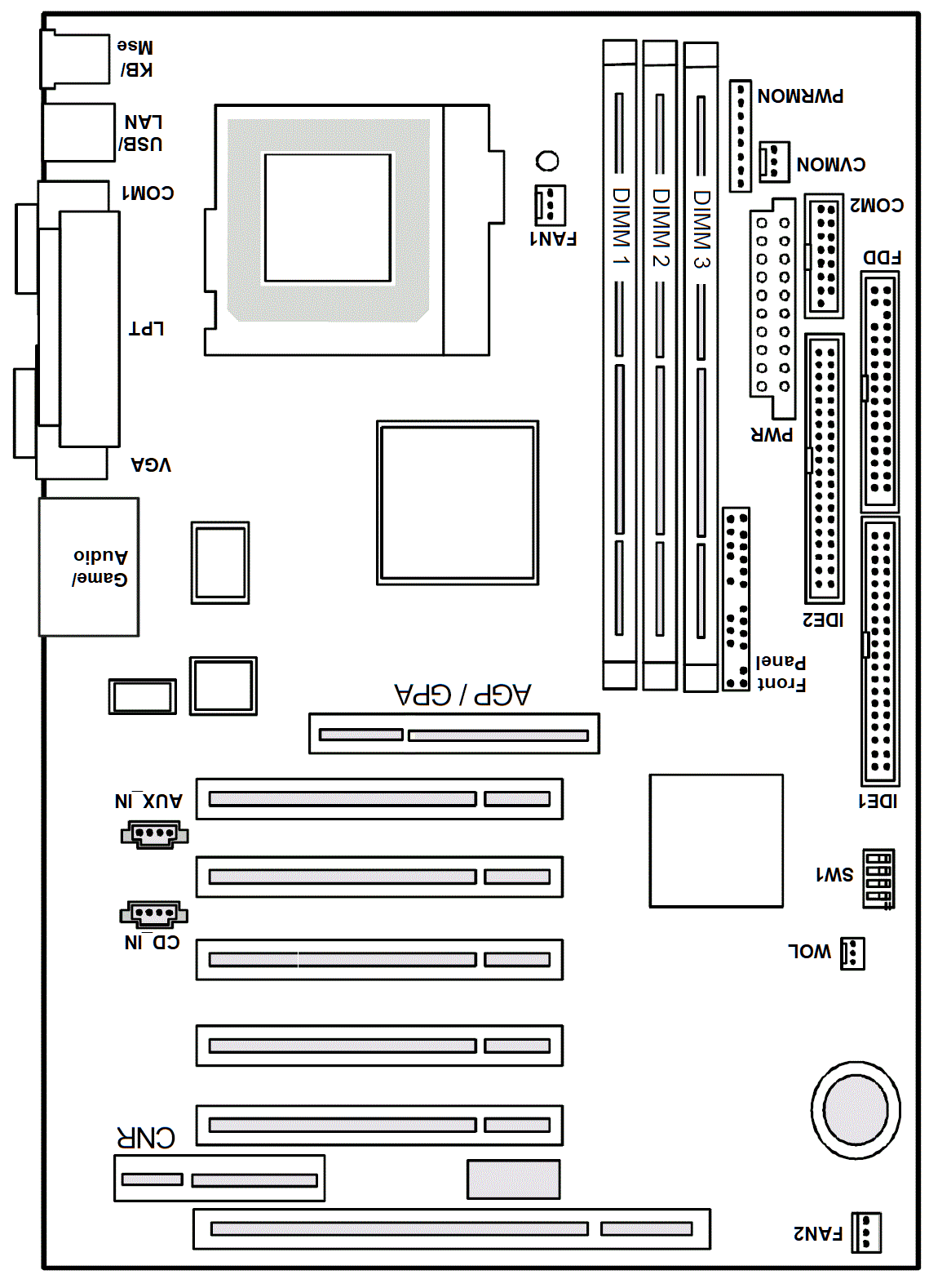 As can be seen the ISA and CNR slots are not always mounted, but the holes are present.