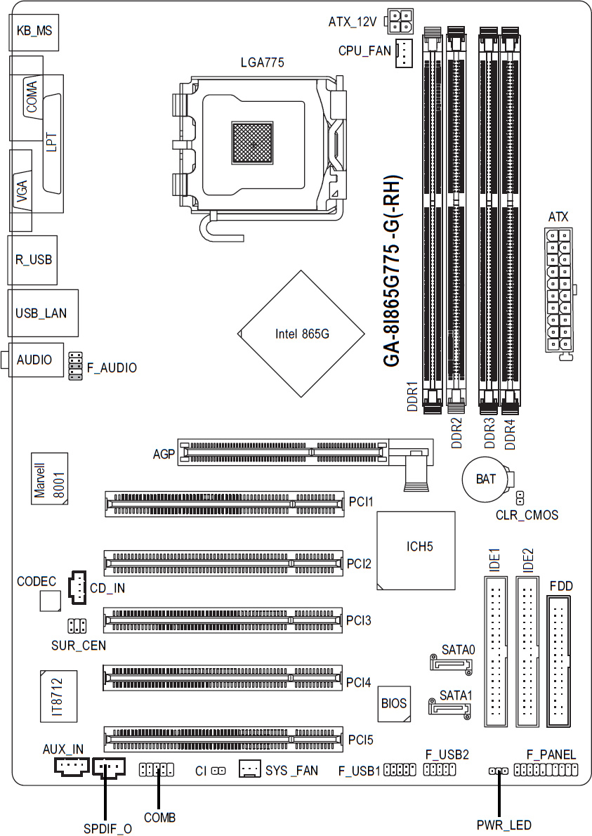 - Gigabyte GA-8I865G775-G-RH (rev. 1.x)
