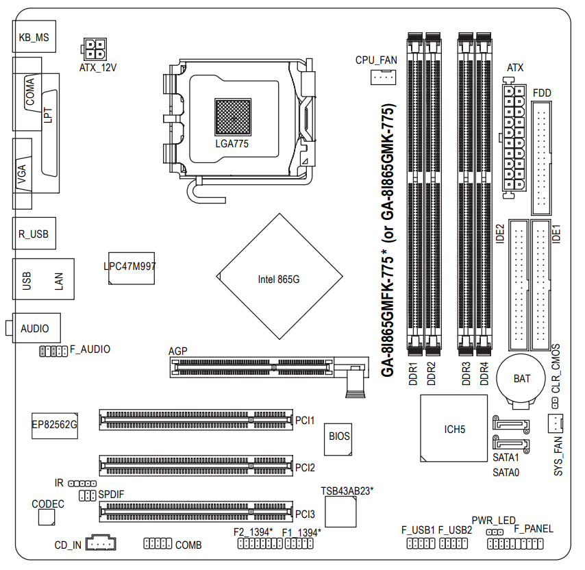 - Gigabyte GA-8I865GMK-775 (rev. 1.0) (no IEEE 1394)