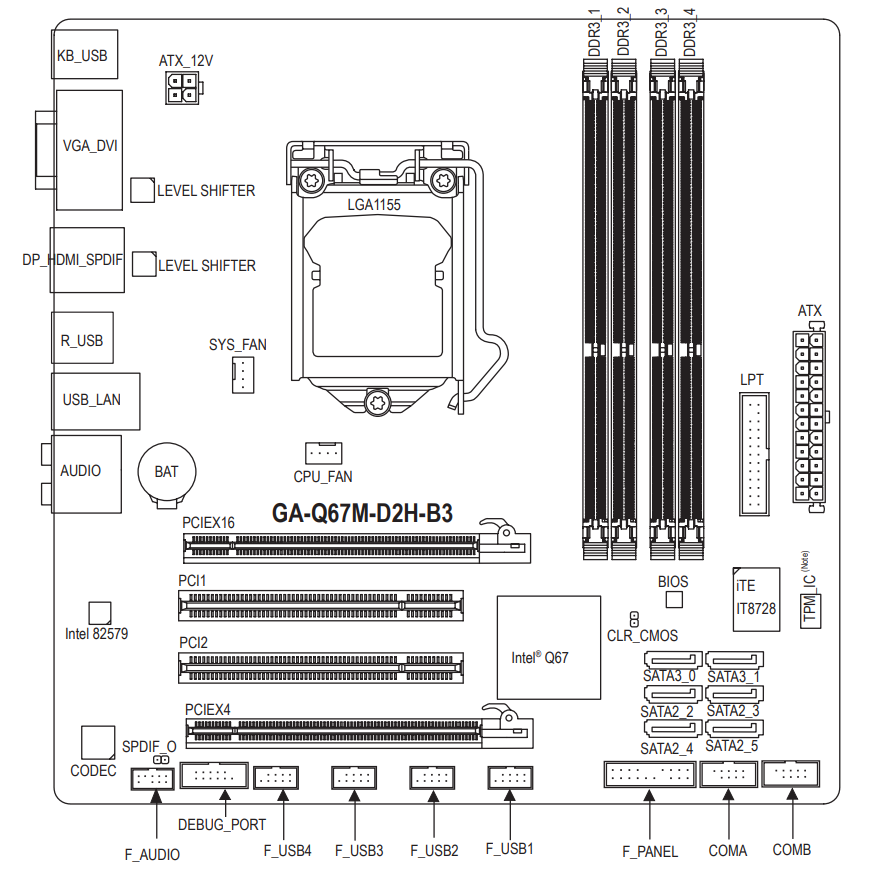 Gigabyte GA-Q67M-D2H-B3 (rev. 1.0)