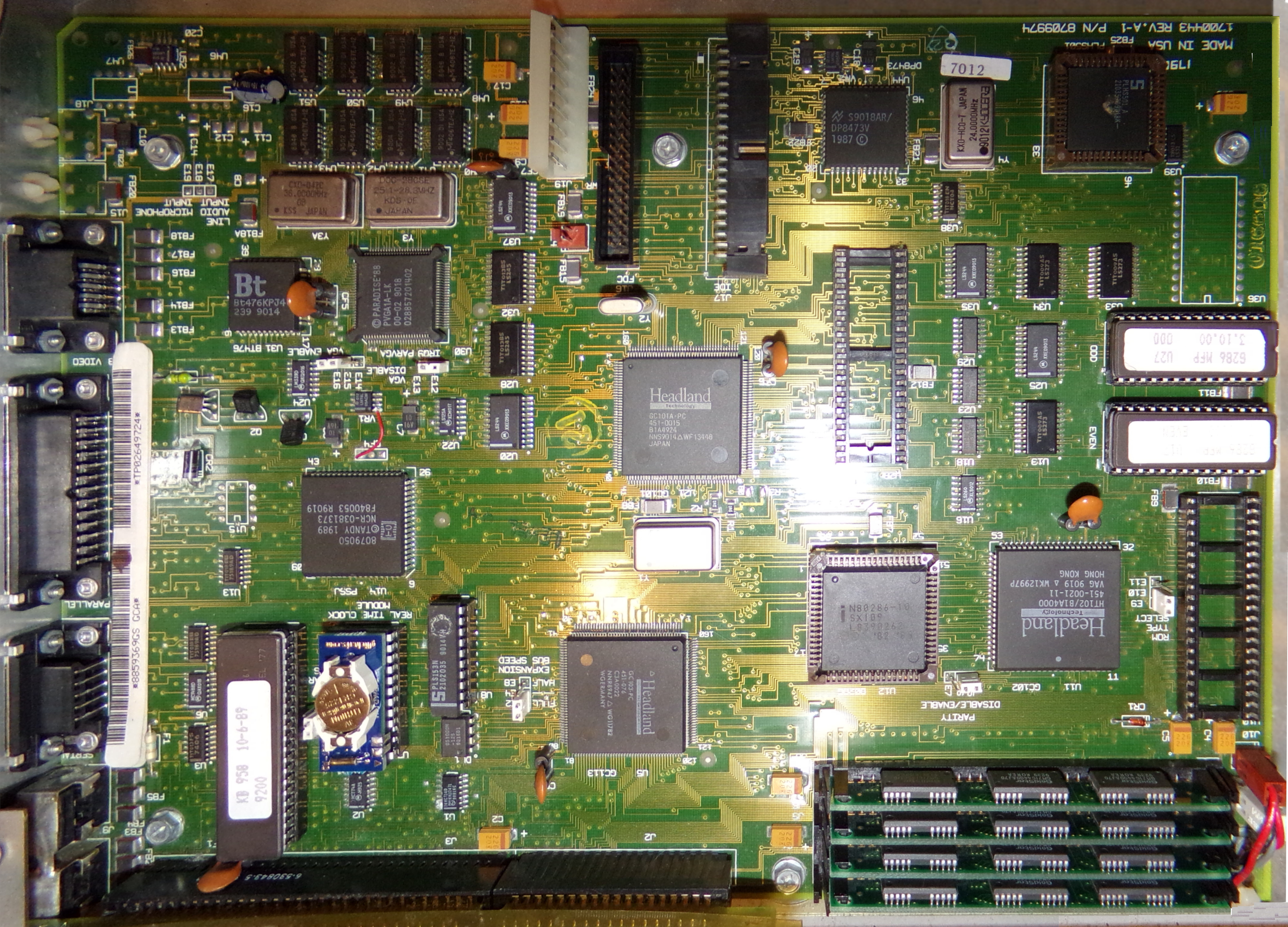 This motherboard is the same as the Tandy 2500XL except with no on board audio jack and different BIOS ROM arrangement. So documentation for the Tandy 2500XL can be used in reference to this board.