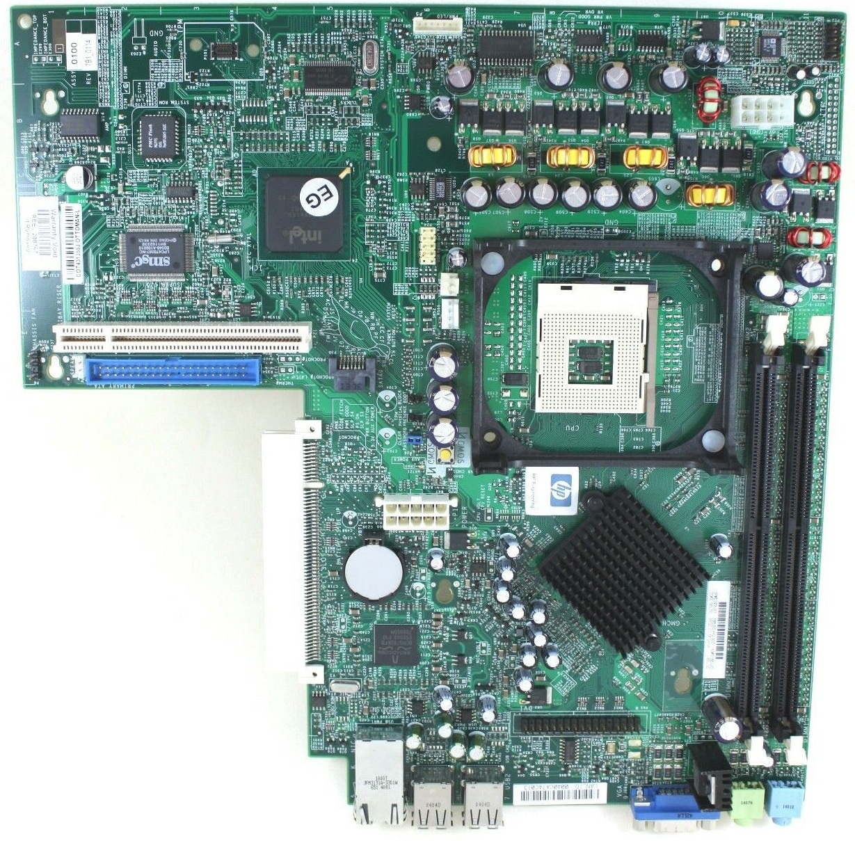 HP d530 USDT motherboard, is not known which OEM made this board. Floppy support via Multibay. Belongs to the 786B1 ROM Family