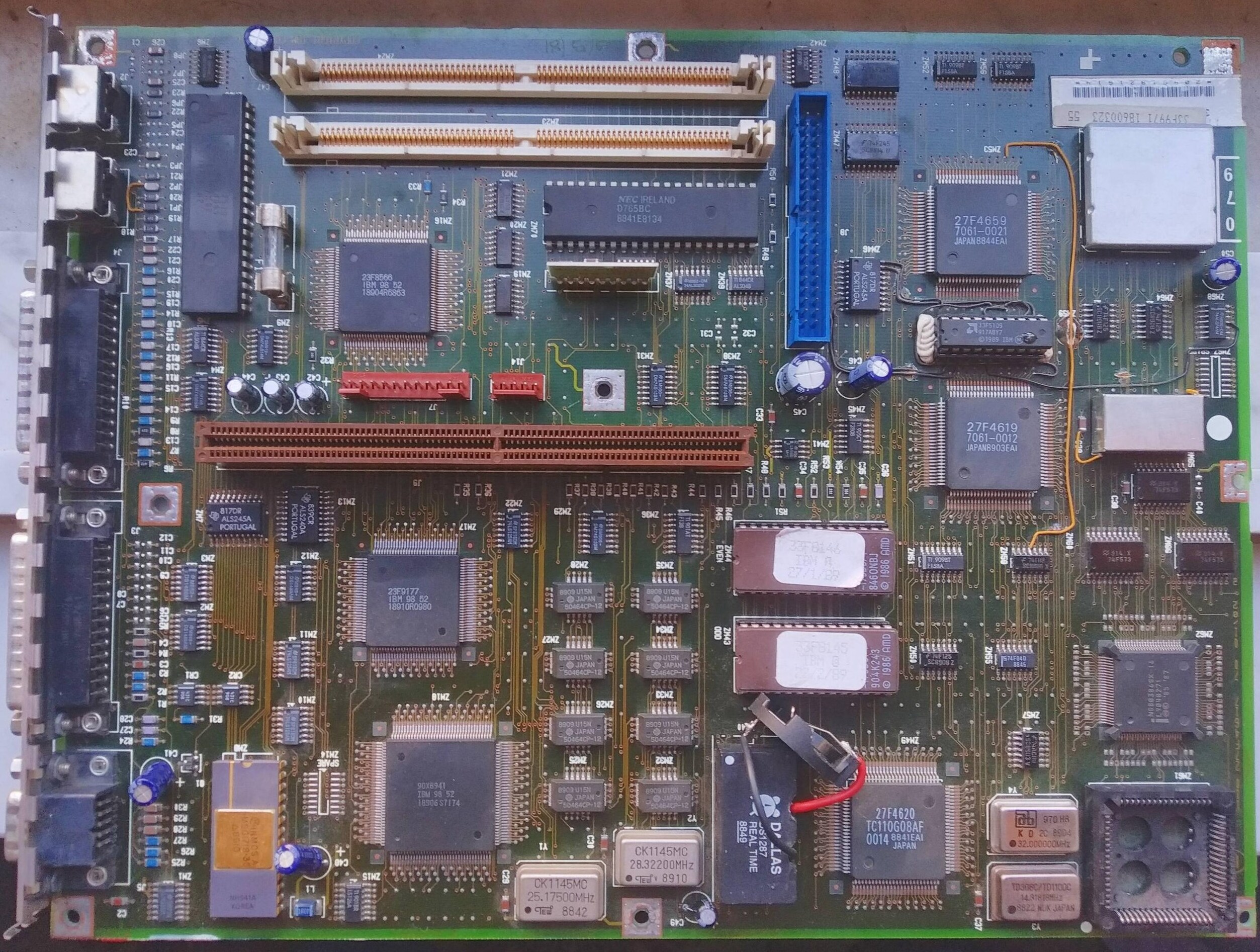 The motherboard's Real-Time Clock (RTC) chip contains a coin cell that may have drained, causing the loss of CMOS settings. This can result in an inability to save settings, causing system instability or failure to boot. To fix this, the RTC chip can be replaced with an equivalent or repaired by cutting into it and soldering on a new external coin cell holder. Replacement guides are available at https://github.com/necroware/nwX287 or https://github.com/necroware/nw12887, depending on the actual chip used.