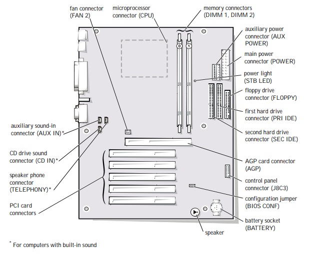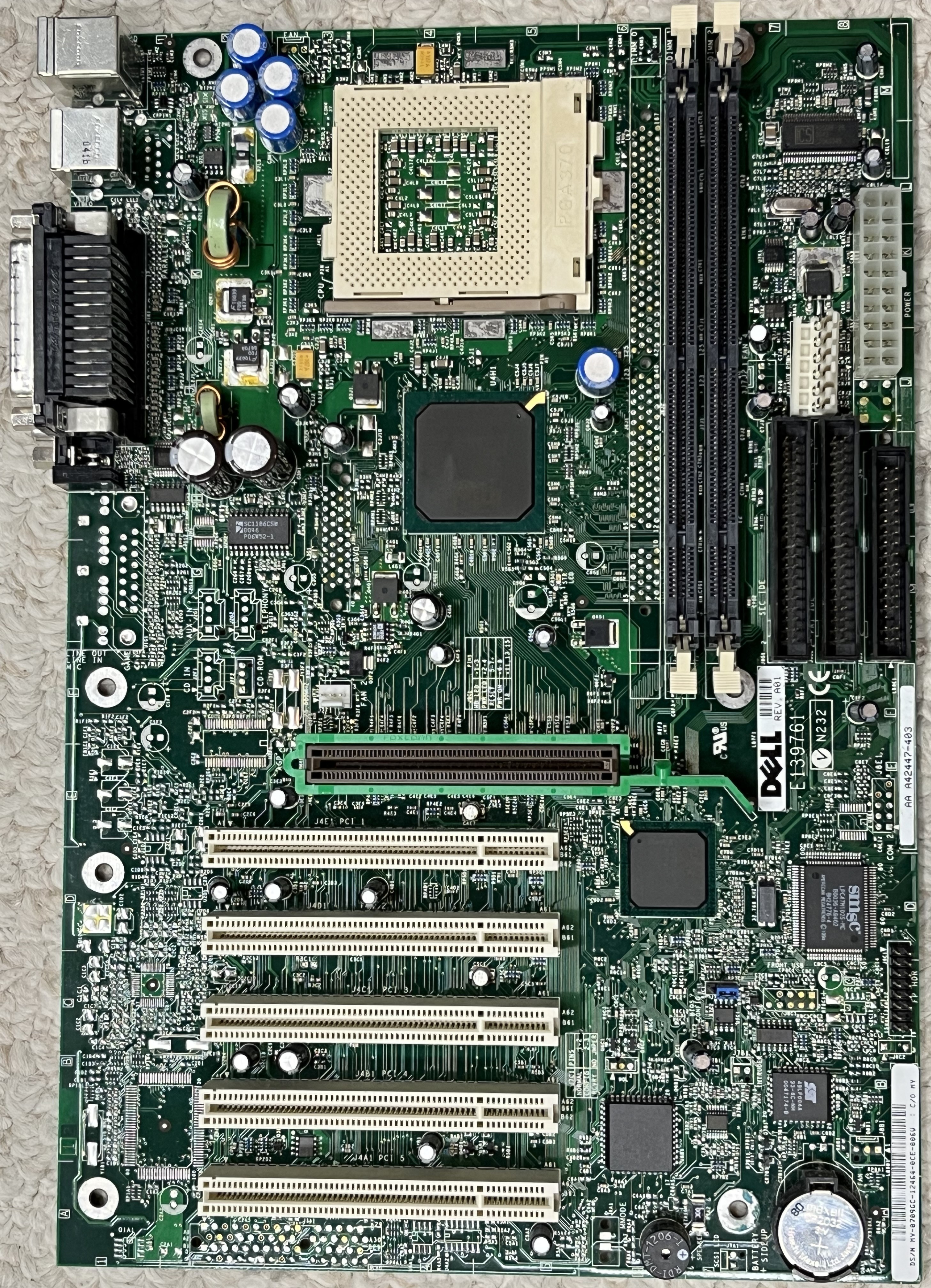 This is the Dell version of the Easton Socket 370 motherboard. Note that the ATX power connector is shifted three pins to the side, making this a proprietary power supply