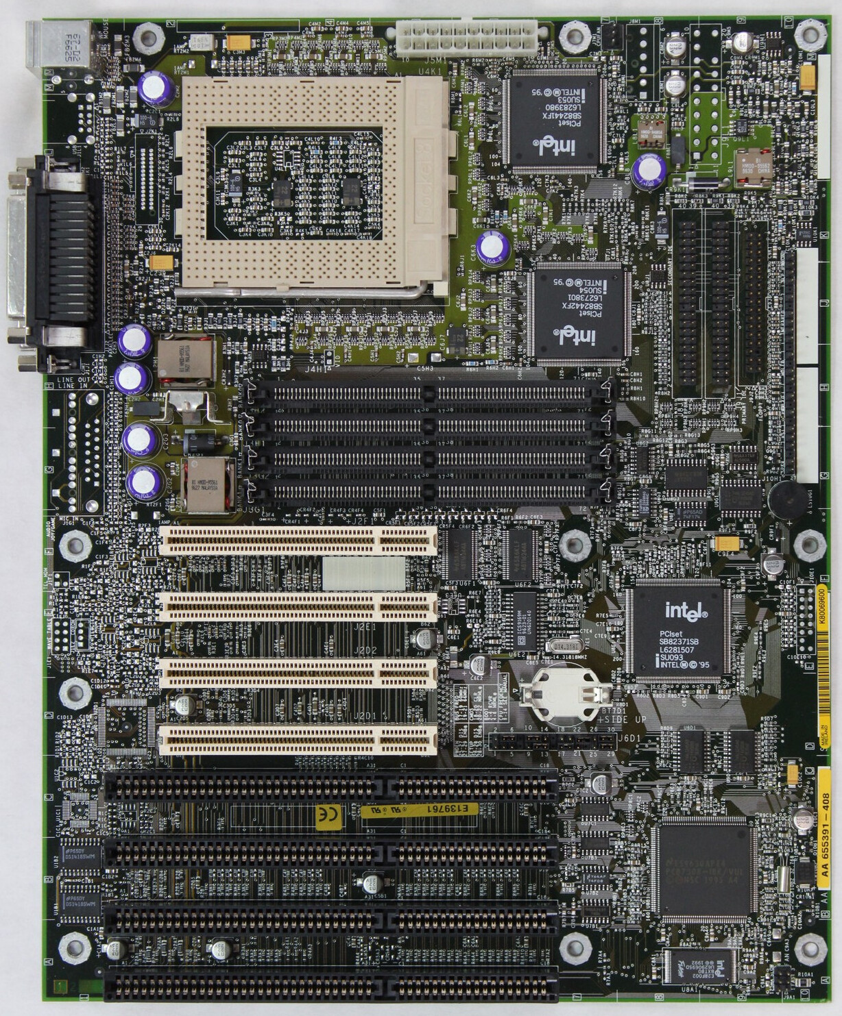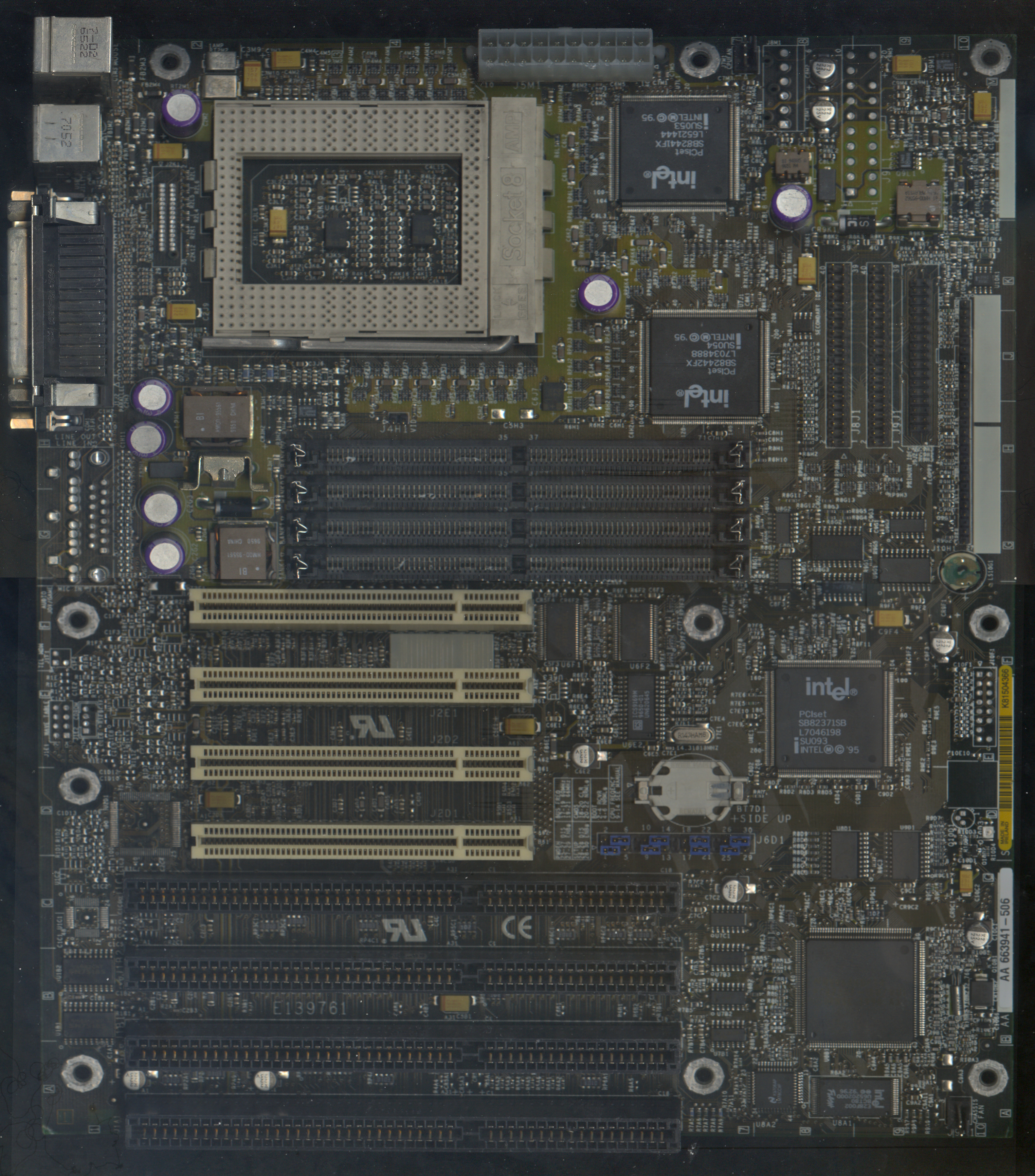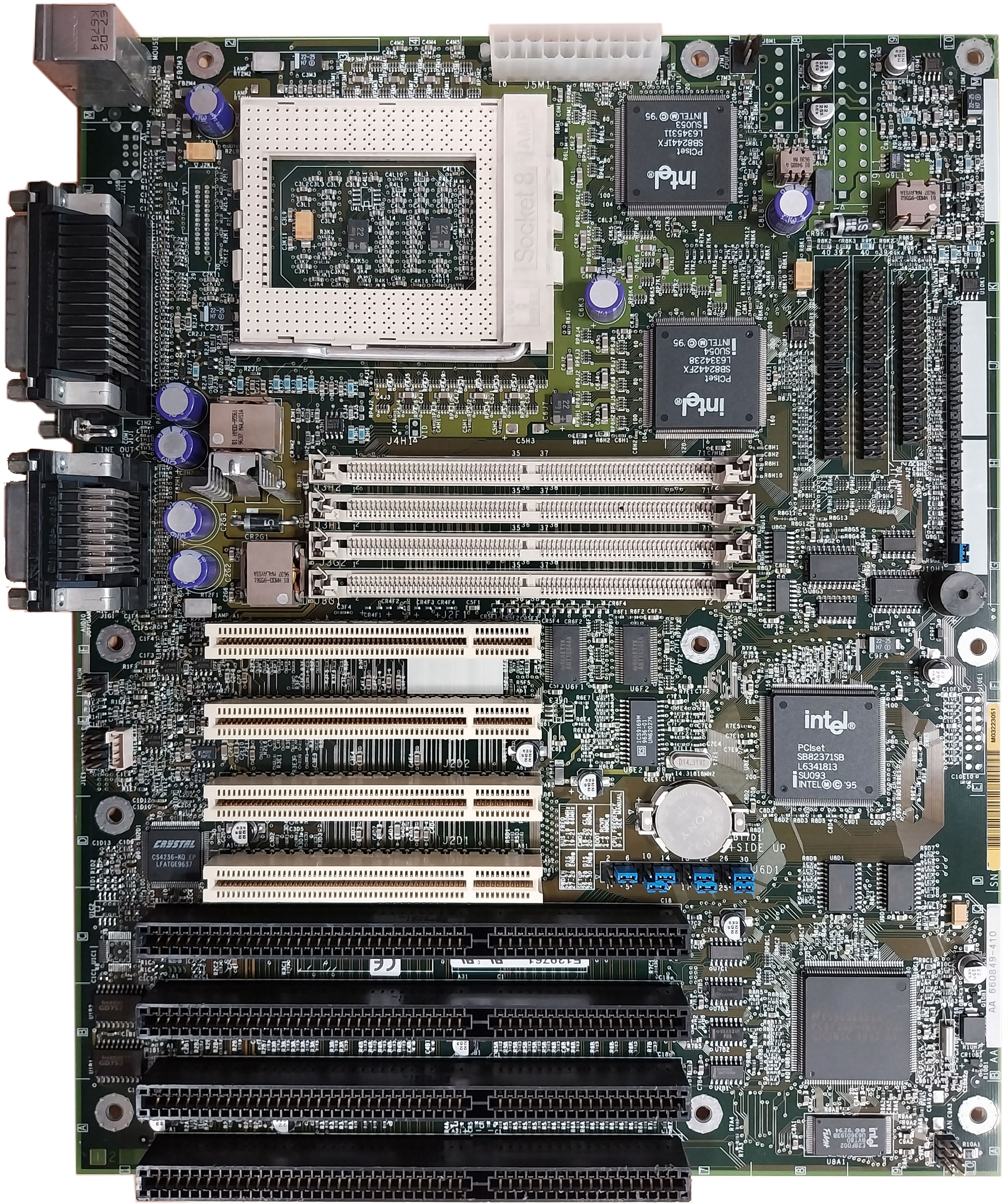 Optional Crystal CS4236 Audio. Has an undocumented 233 MHz jumper setting. Pentium II Overdrive officially supported in later BIOS releases.
