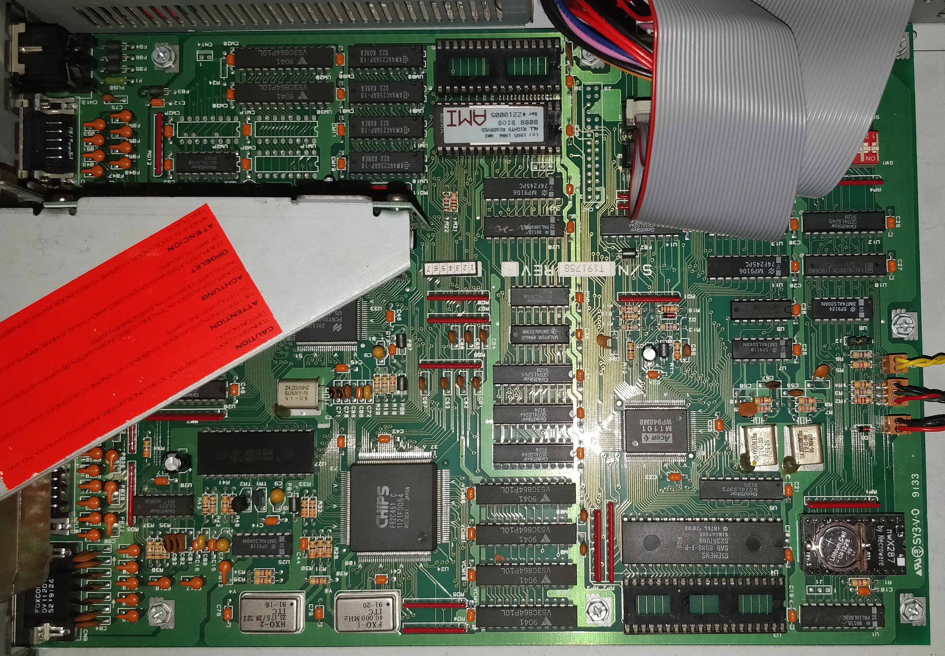 The motherboard's Real-Time Clock (RTC) chip contains a coin cell that may have drained, causing the loss of CMOS settings. This can result in an inability to save settings, causing system instability or failure to boot. To fix this, the RTC chip can be replaced with an equivalent or repaired by cutting into it and soldering on a new external coin cell holder. Replacement guides are available at https://github.com/necroware/nwX287 or https://github.com/necroware/nw12887, depending on the actual chip used.
