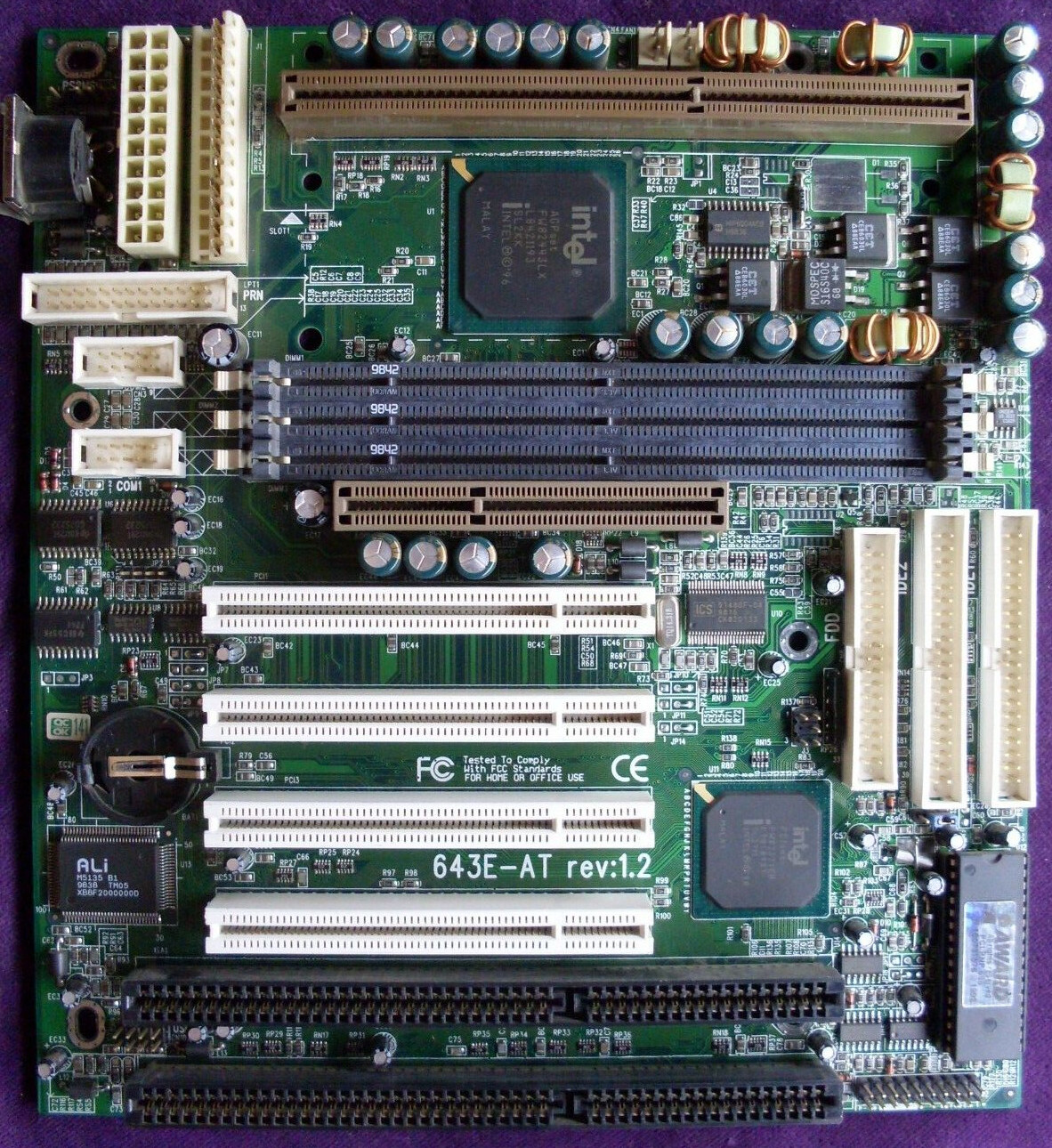 Even though it is marked 643E AT, it has all memory and PCI slots and the i440LX chipset, so this is in fact a 643L-AT board.