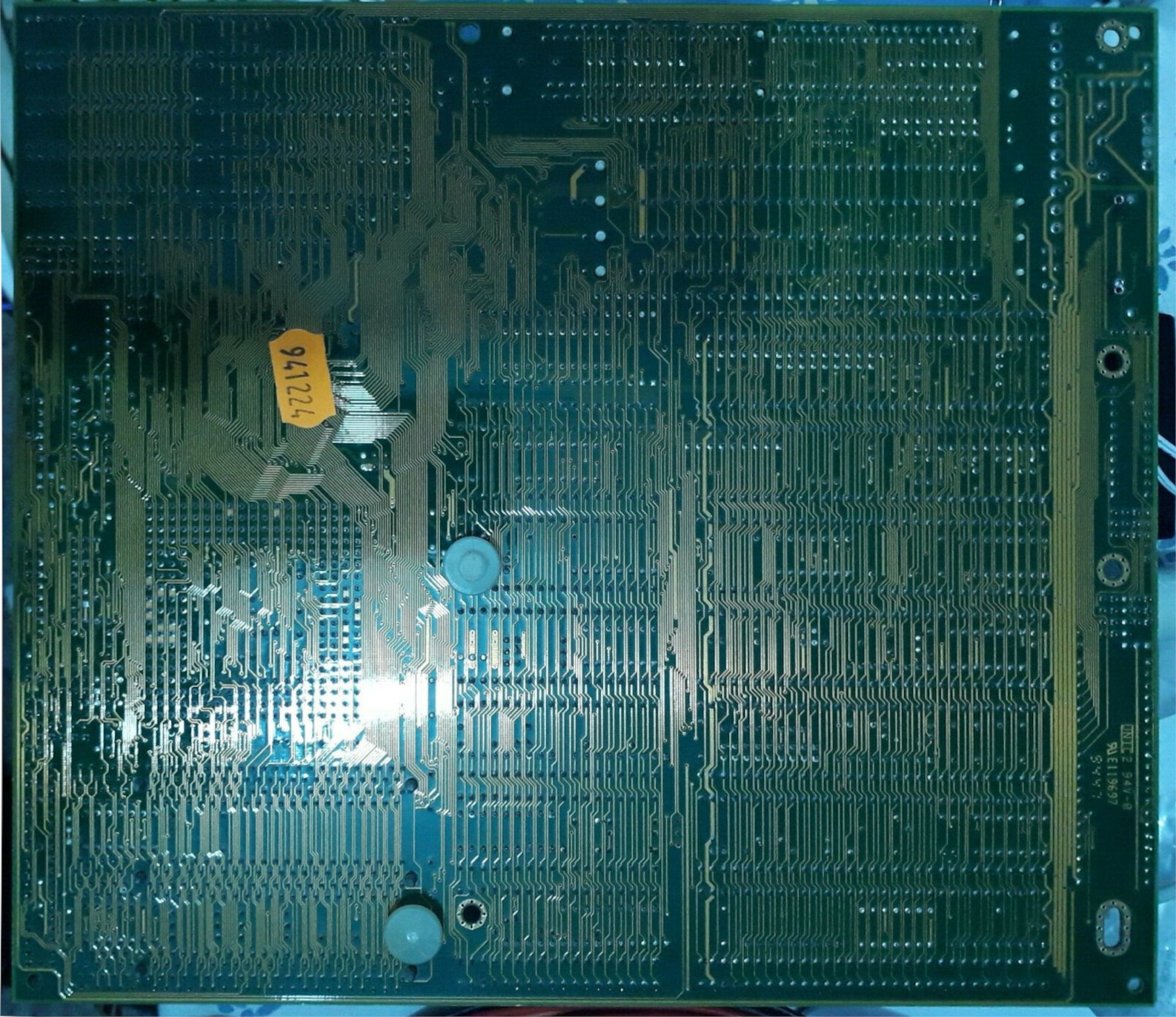 The Ni-Cd battery may be leaking, risking damage to PCB layers & nearby components. Promptly remove the battery & clean corrosion/alkaline salts from the board. Use white vinegar to dissolve salts, but exercise caution as vinegar can corrode exposed metals. A thorough examination & repair may be needed. Replace battery with guide: https://github.com/wiretap-retro/Not-A-Varta