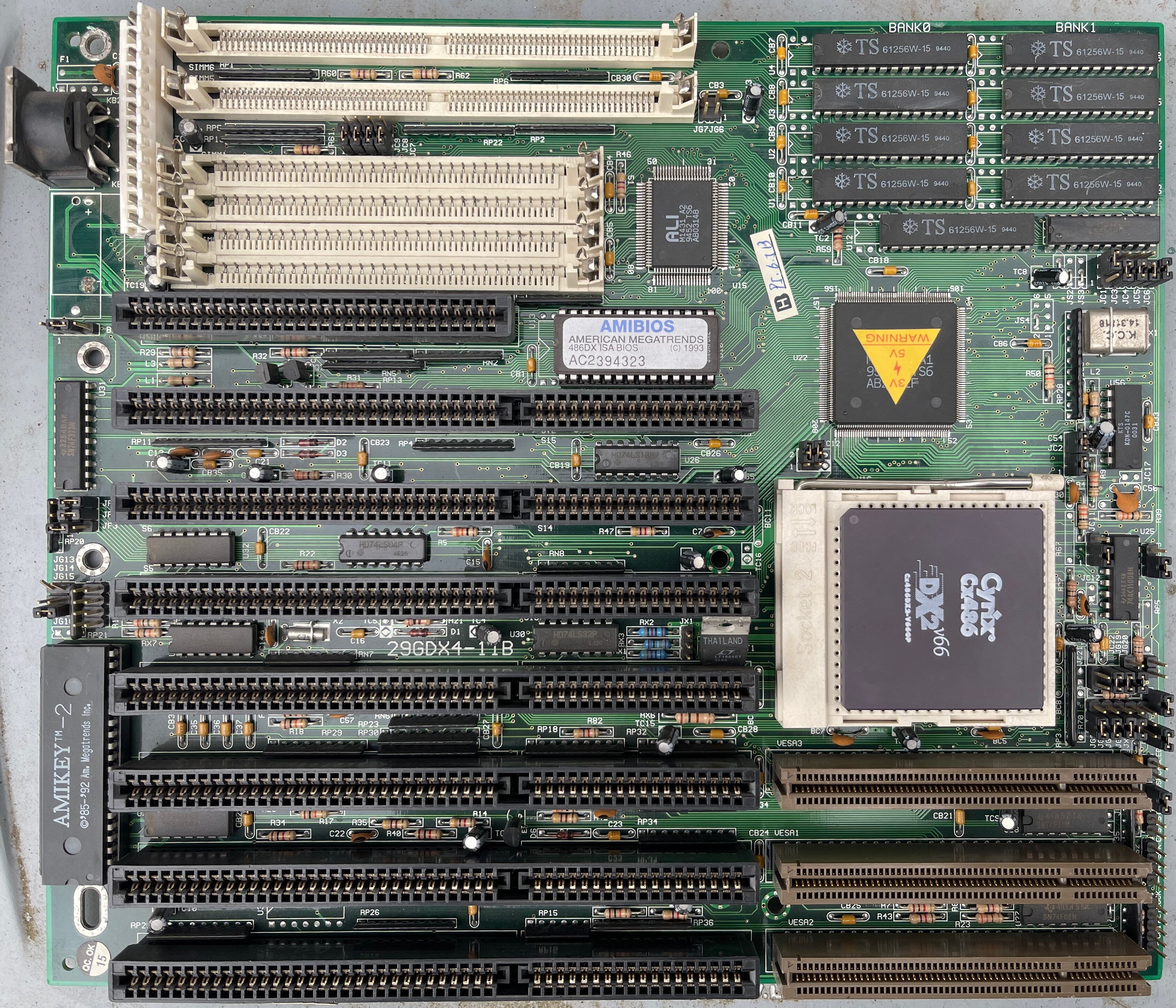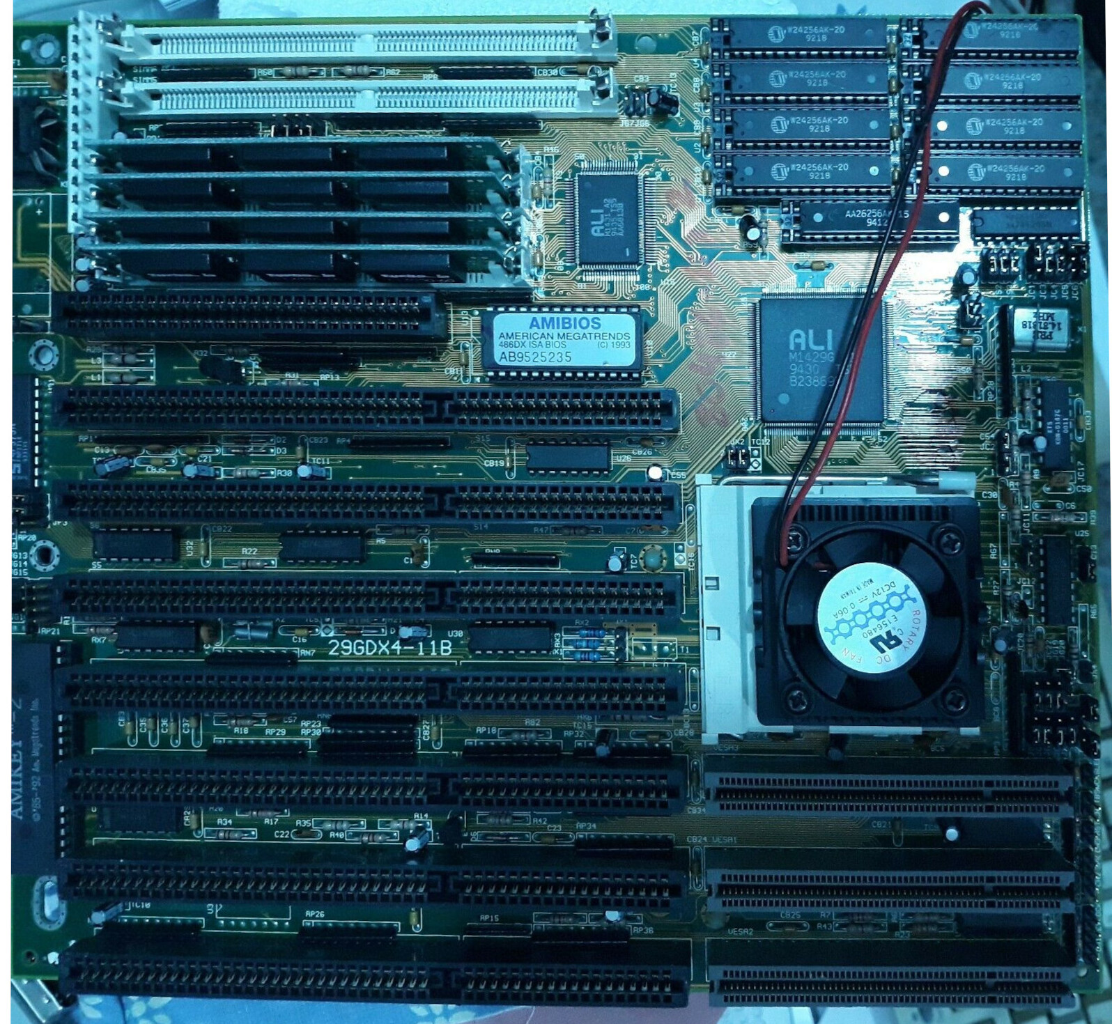 The motherboard may include a non-functional or counterfeit SRAM cache, which can adversely affect performance. Signs of fake cache often include soldered DIP-chips and no jumpers to set the chache size. Cache functionality can usually be restored by installing proper chips, jumpers and a BIOS update/mod.