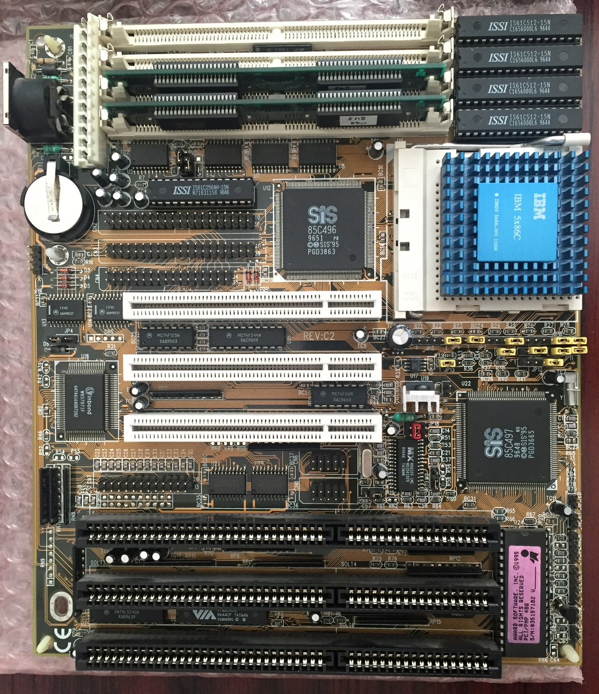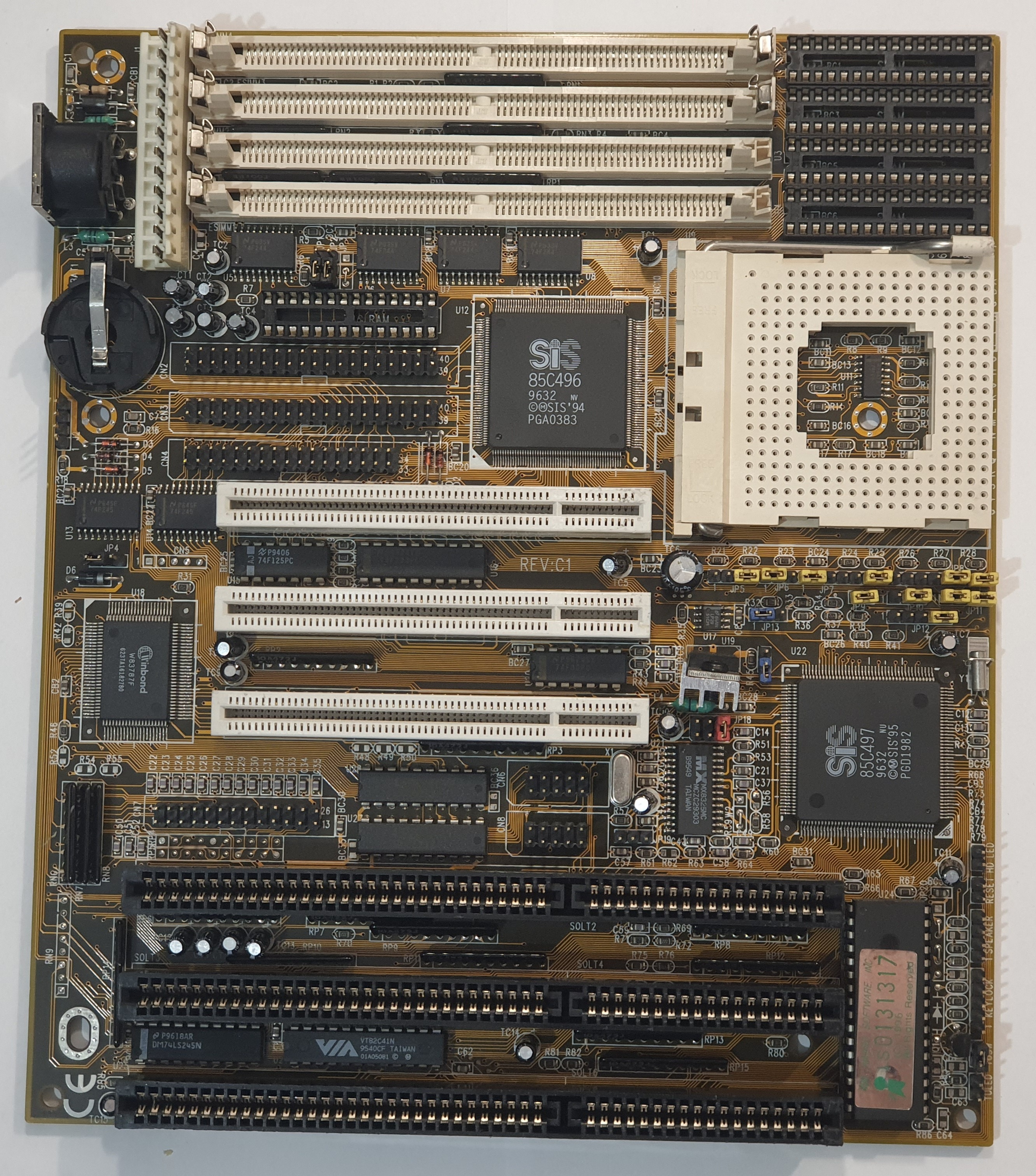 Rev C1 uses thru hole TTL chips near the LPT header, while rev C2 has surface mount TTL chips. There are versions that support EDO memory, not all of them do, this depends on the revision of the chipset.