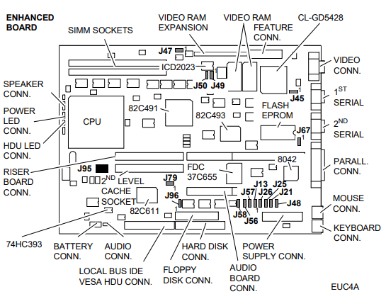 Entry variants use the Cirrus Logic GD5424, Enhanced variants use the GD5428.