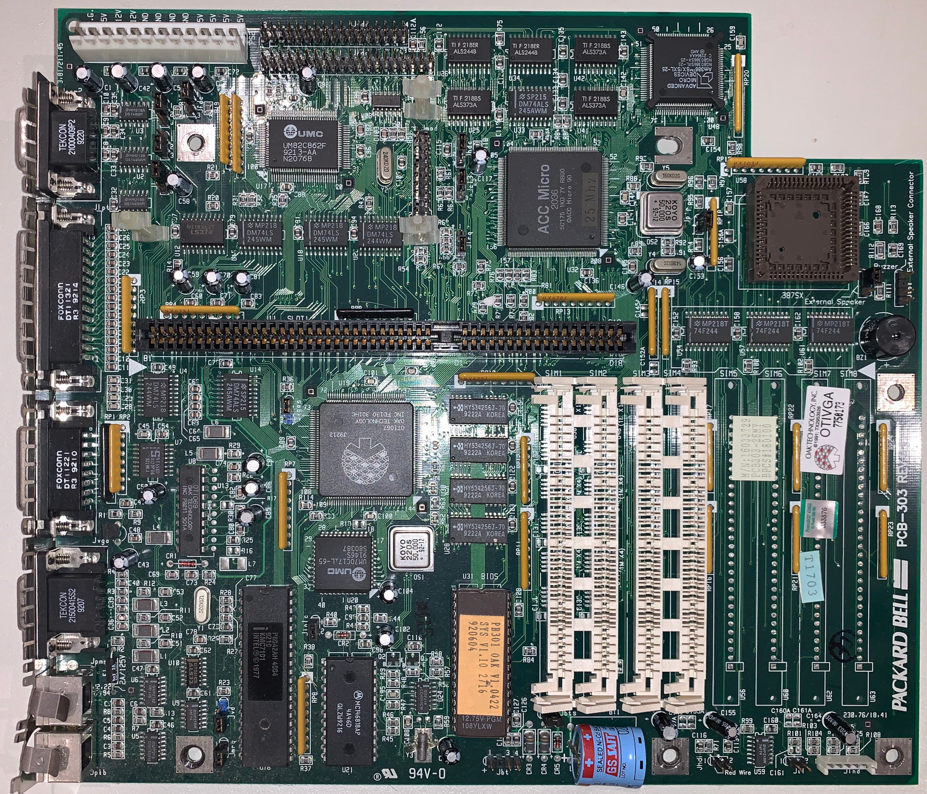 The motherboard's Real-Time Clock (RTC) chip contains a coin cell that may have drained, causing the loss of CMOS settings. This can result in an inability to save settings, causing system instability or failure to boot. To fix this, the RTC chip can be replaced with an equivalent or repaired by cutting into it and soldering on a new external coin cell holder. Replacement guides are available at https://github.com/necroware/nwX287 or https://github.com/necroware/nw12887, depending on the actual chip used.