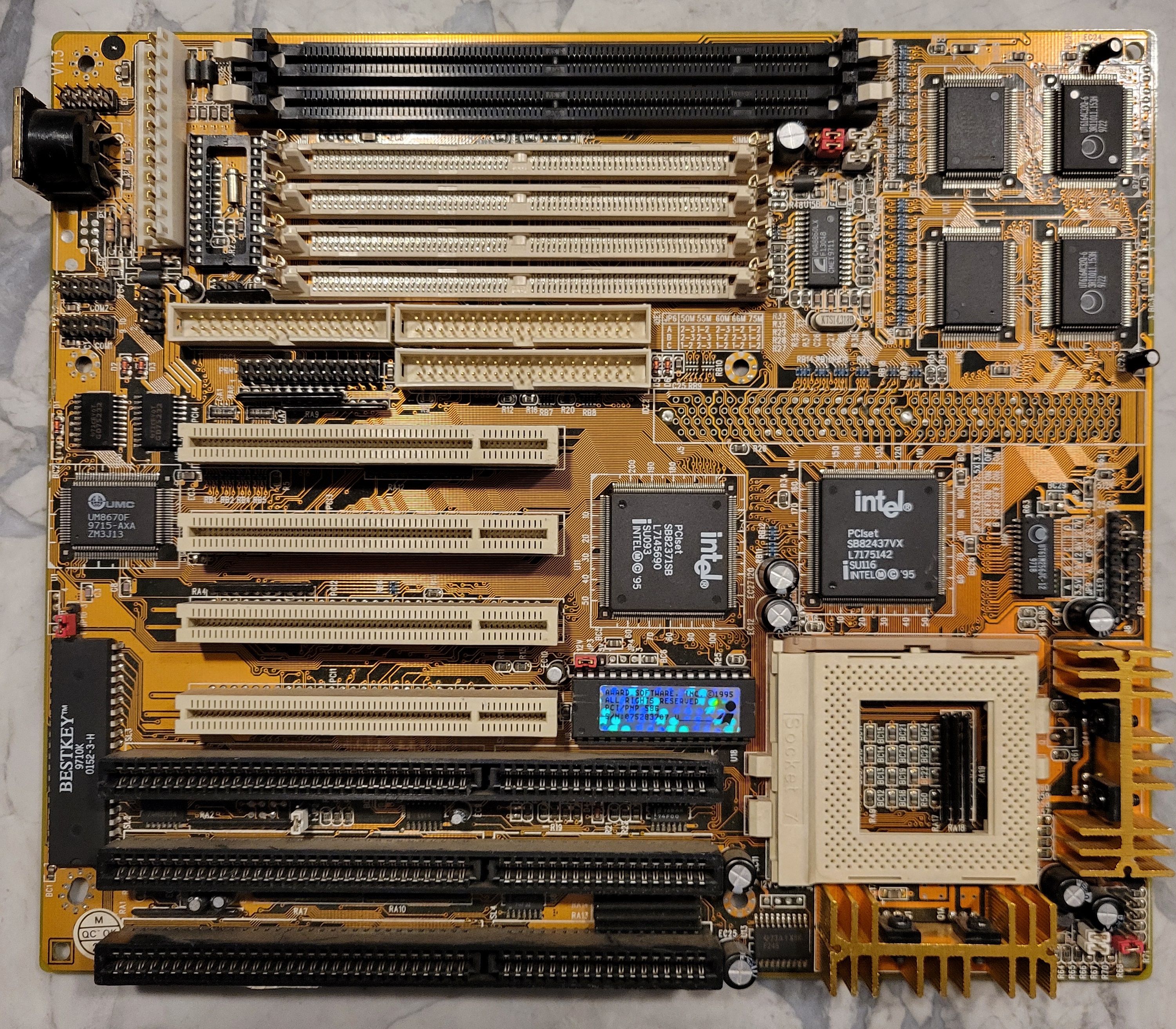 Basically a PCChips M535 without COAST slot. Shares BIOS with the PCChips M520/M525/M530/M535/M536. Needs patched BIOS (either the patched last official BIOS or the Unicore BIOS) to use HDDs larger than 32 GB.