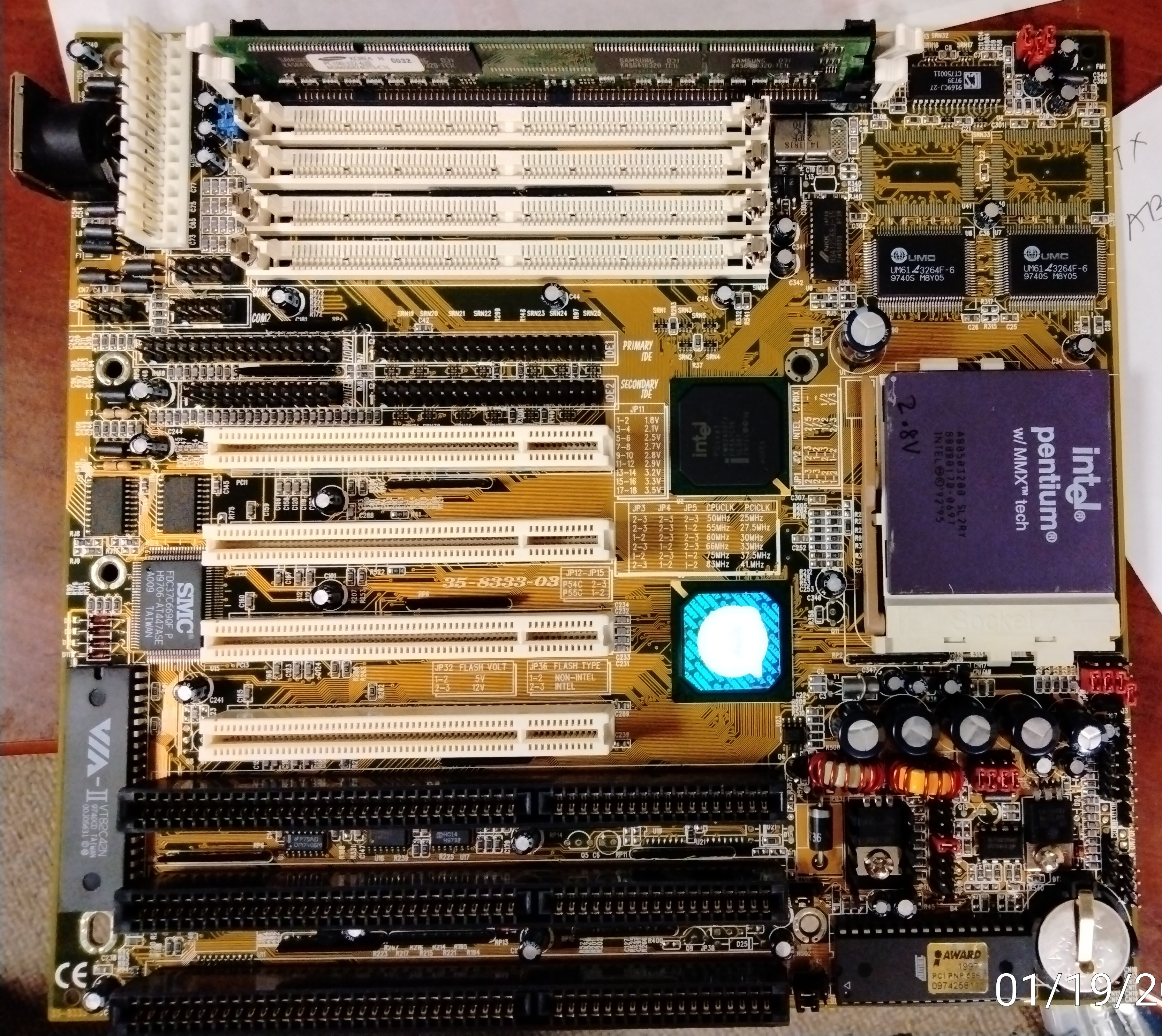 55/75/83 MHz FSB settings only appear on some late 35-8333-03 models which has a different clockgen chip. JP1=2-3, JP2=2-3 is read by the Cyrix 6x86 as 1x so core speed=FSB.