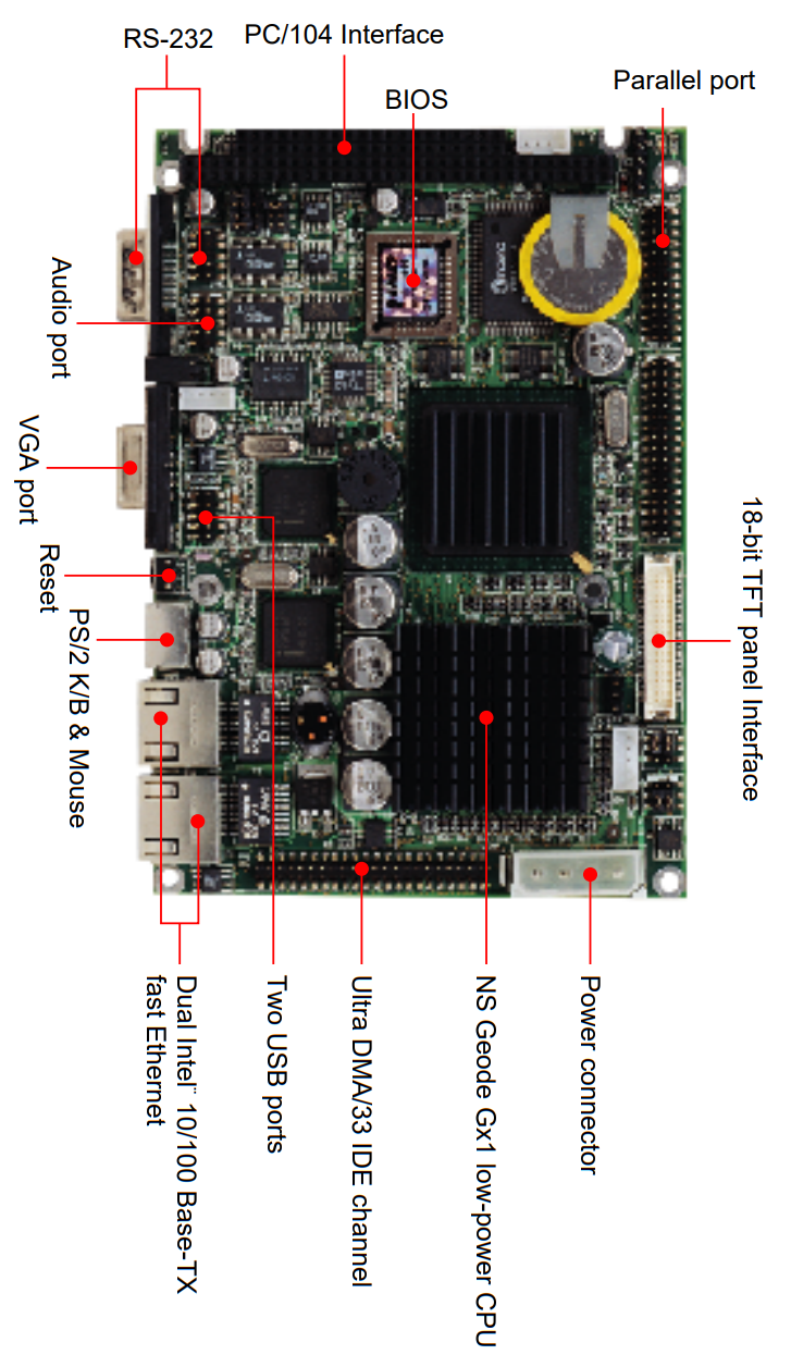 On-board NS Geode GX1 200/300MHz, Capable to support NS Geode GXm, GXLV, and GX1