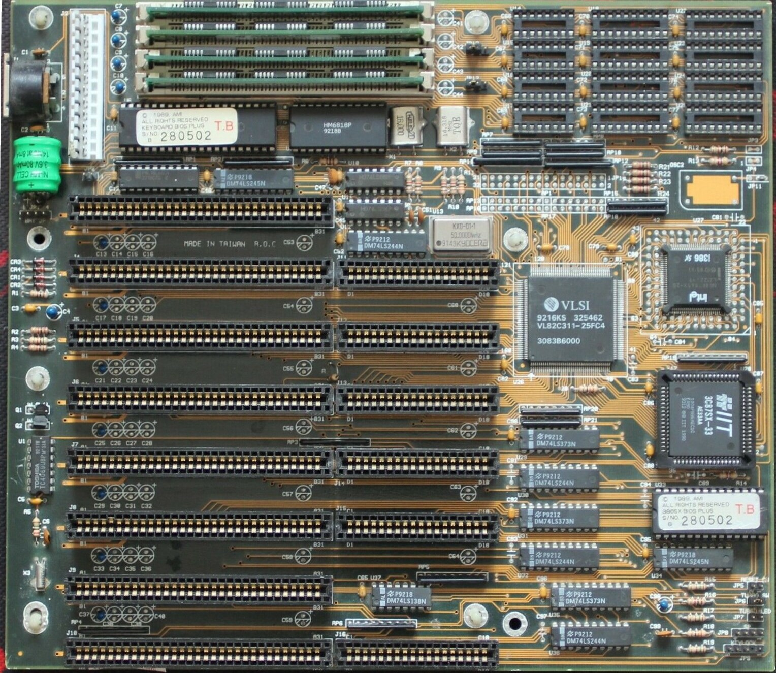 The Ni-Cd battery may be leaking, risking damage to PCB layers & nearby components. Promptly remove the battery & clean corrosion/alkaline salts from the board. Use white vinegar to dissolve salts, but exercise caution as vinegar can corrode exposed metals. A thorough examination & repair may be needed. Replace battery with guide: https://github.com/wiretap-retro/Not-A-Varta
