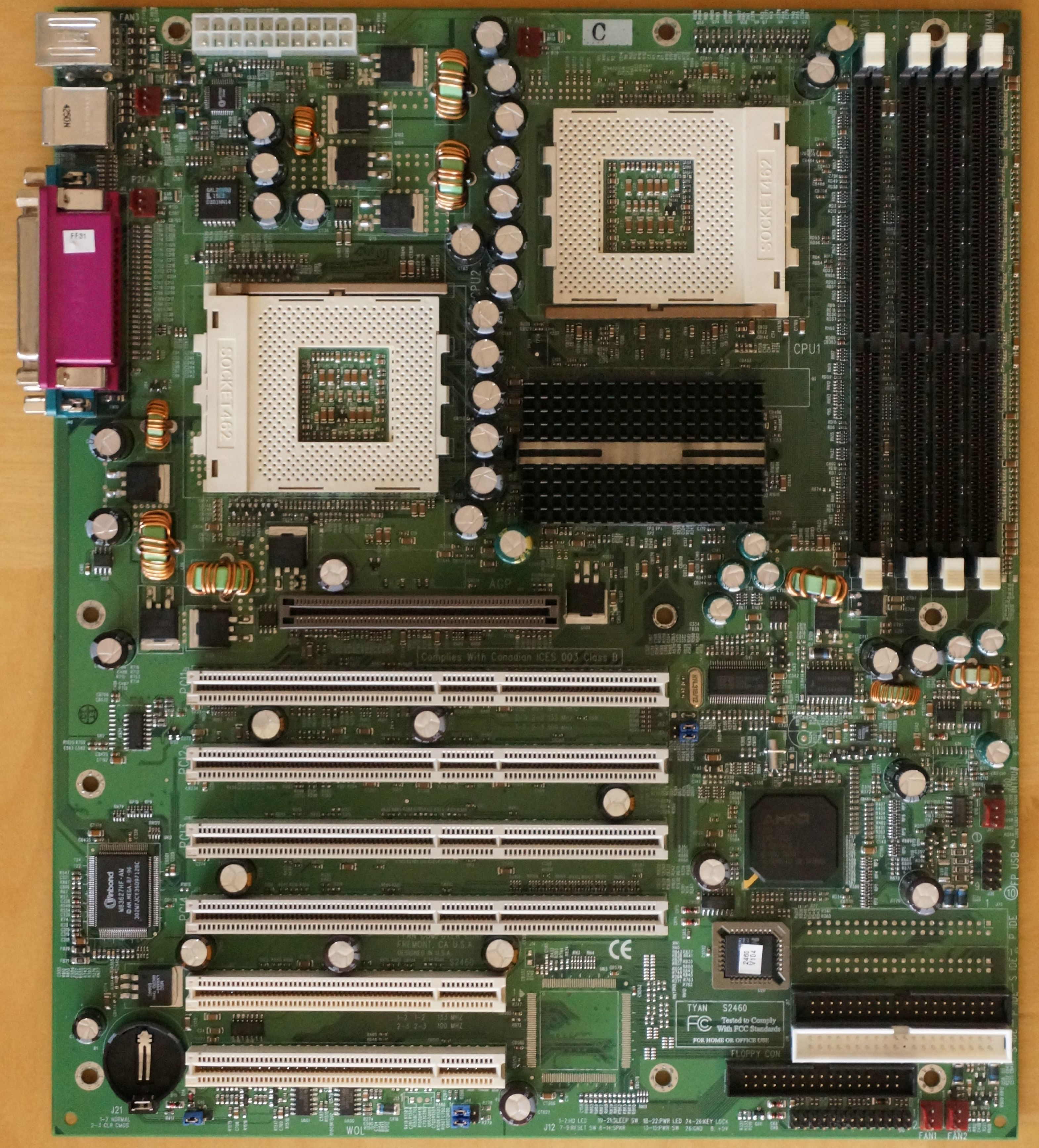 Dual Socket A CPU's powered by a shared 5V rail on the 20 pin ATX Connector. What could go wrong? It can become well browned and crispy over time, you will need a psu with a strong 5v rail and good quality atx connector if you want to prevent this!