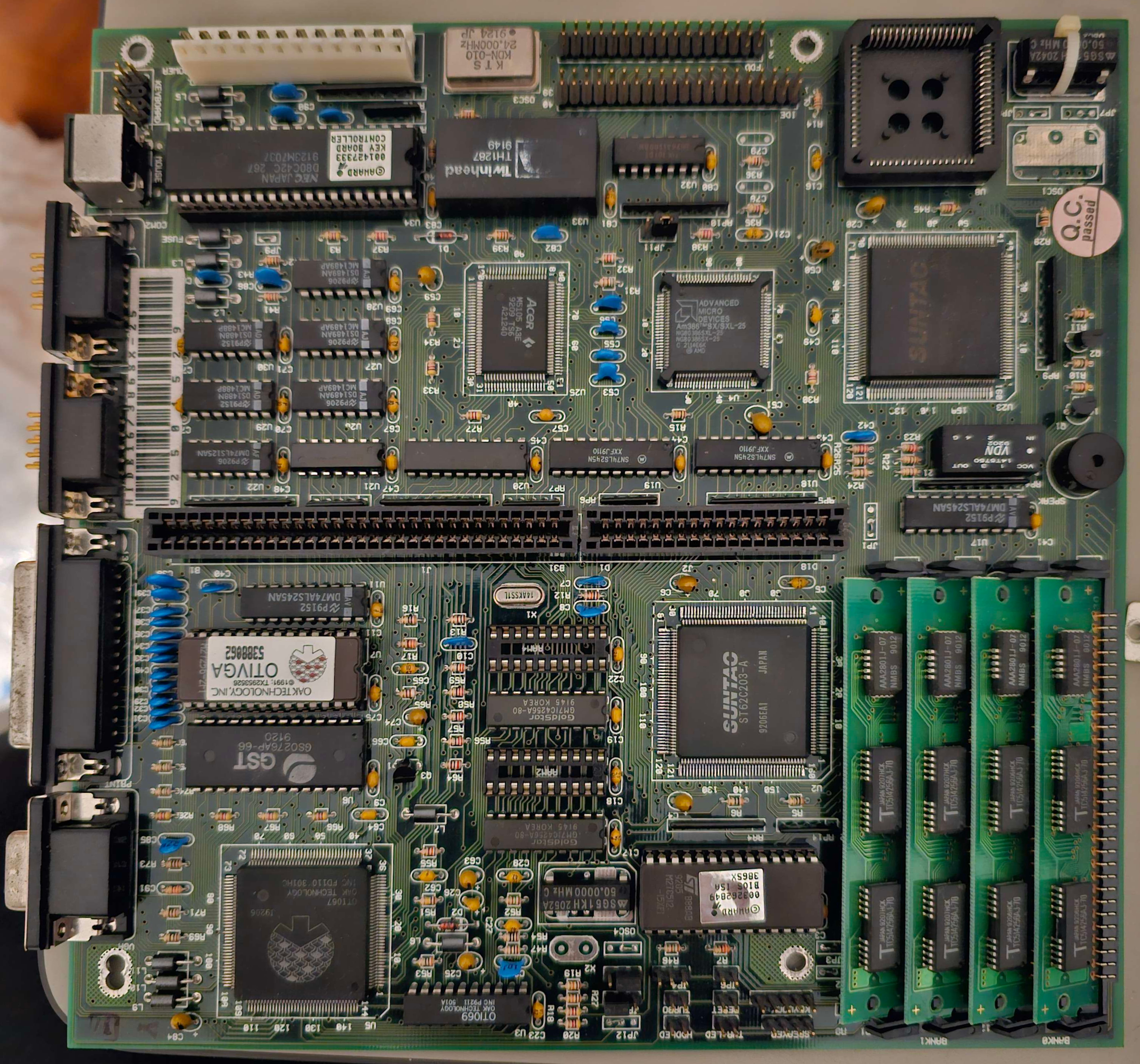 The motherboard's Real-Time Clock (RTC) chip contains a coin cell that may have drained, causing the loss of CMOS settings. This can result in an inability to save settings, causing system instability or failure to boot. To fix this, the RTC chip can be replaced with an equivalent or repaired by cutting into it and soldering on a new external coin cell holder. Replacement guides are available at https://github.com/necroware/nwX287 or https://github.com/necroware/nw12887, depending on the actual chip used.