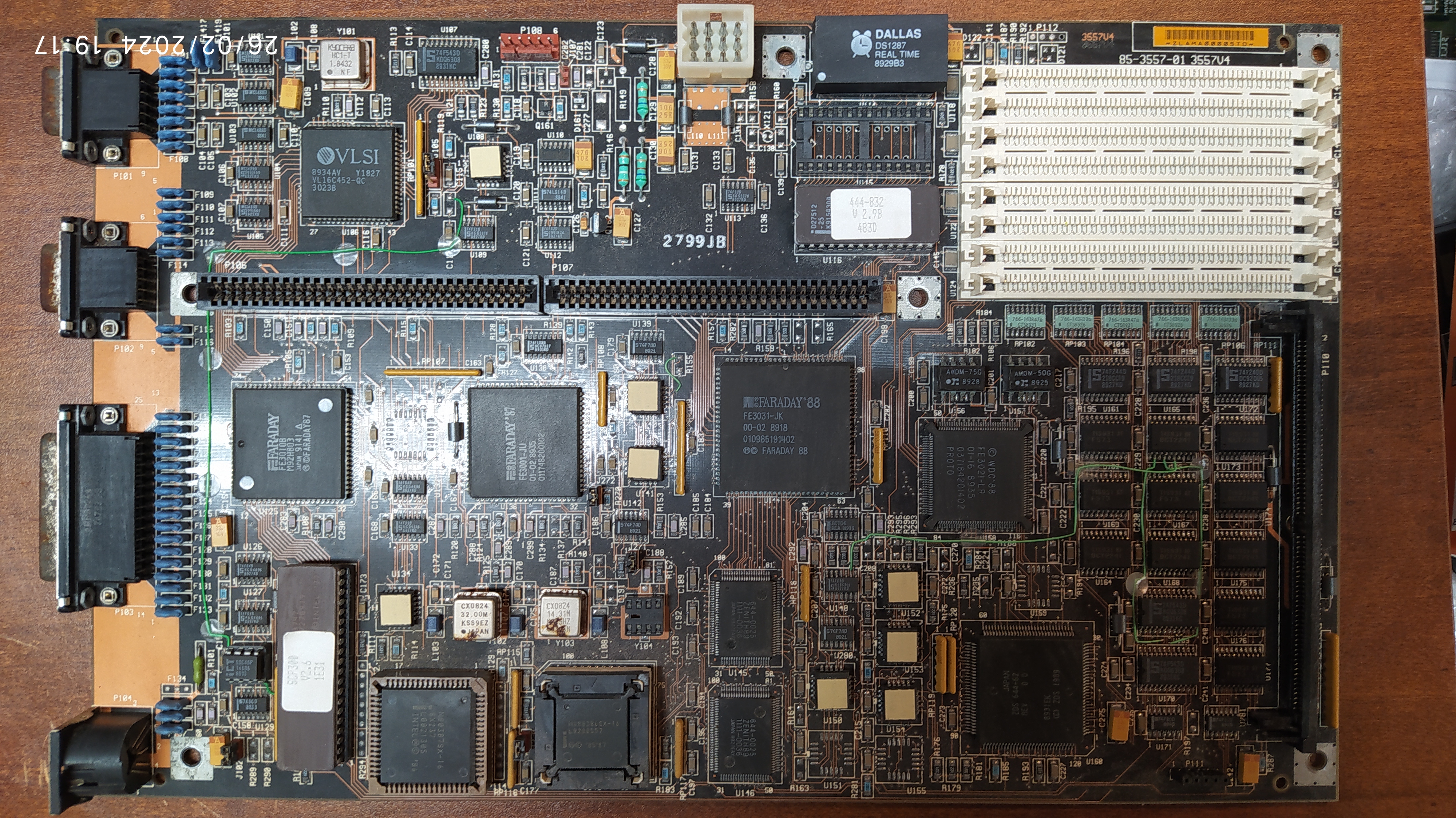 The motherboard's Real-Time Clock (RTC) chip contains a coin cell that may have drained, causing the loss of CMOS settings. This can result in an inability to save settings, causing system instability or failure to boot. To fix this, the RTC chip can be replaced with an equivalent or repaired by cutting into it and soldering on a new external coin cell holder. Replacement guides are available at https://github.com/necroware/nwX287 or https://github.com/necroware/nw12887, depending on the actual chip used.